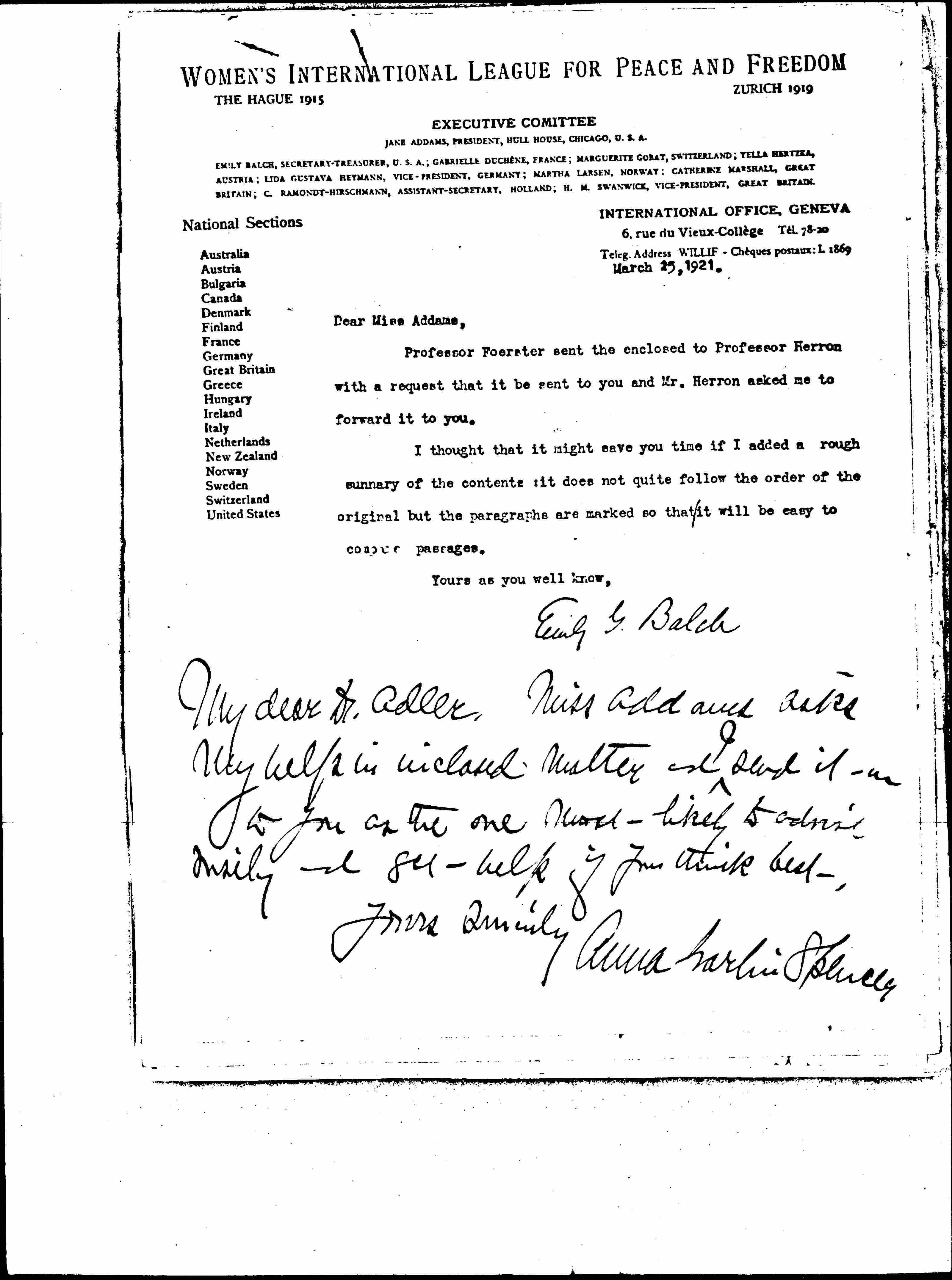 My dear Dr. Adler, Miss Addams asks my help in [enclosed] matter and ↑I↓ send it on to you as the one most likely to advise wisely and get help if you think best.