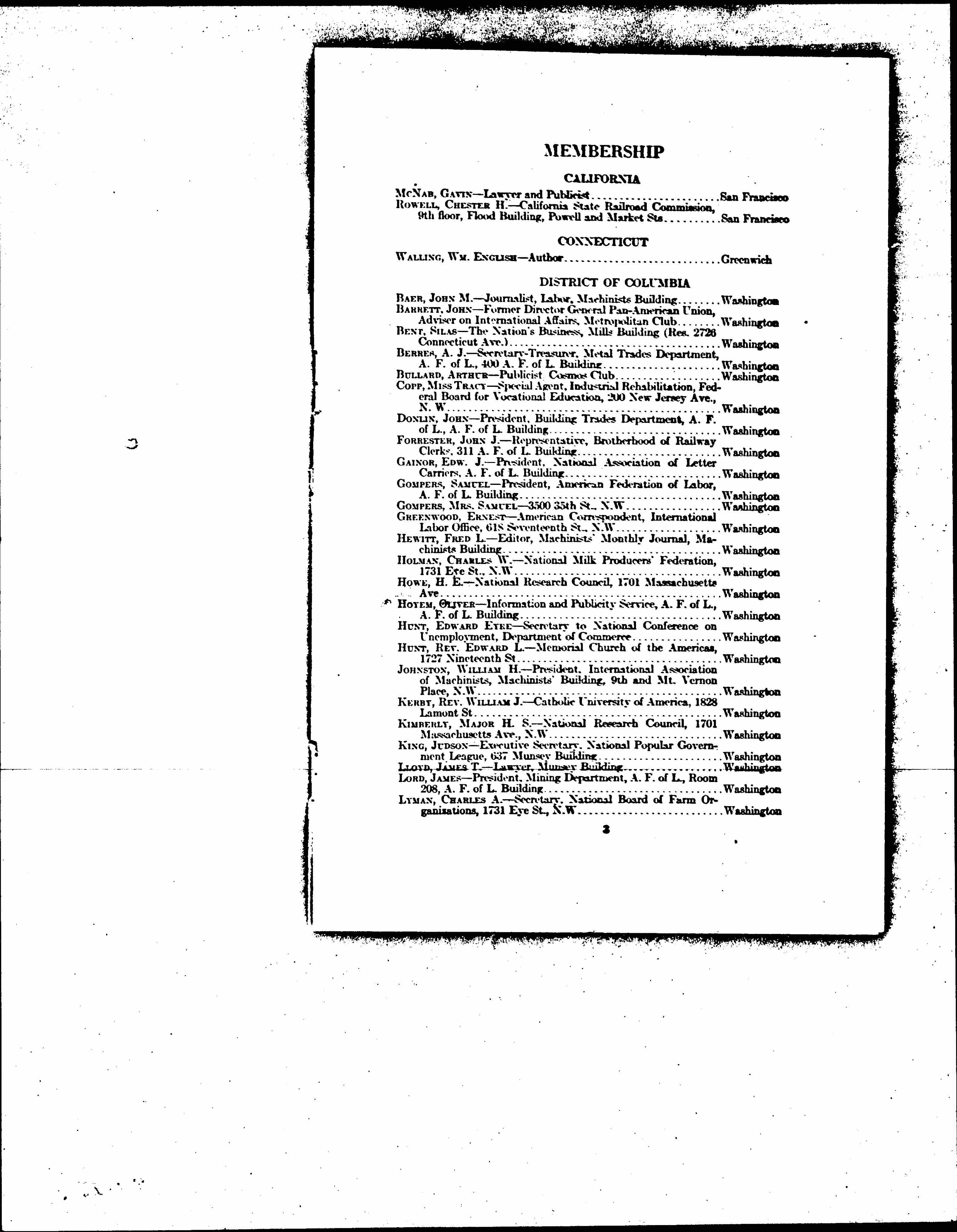 LYMAN, CHARLES A. -- Secretary, National Board of Farm Organizations, 1731 Eye St., N.W. ... Washington [page 4]