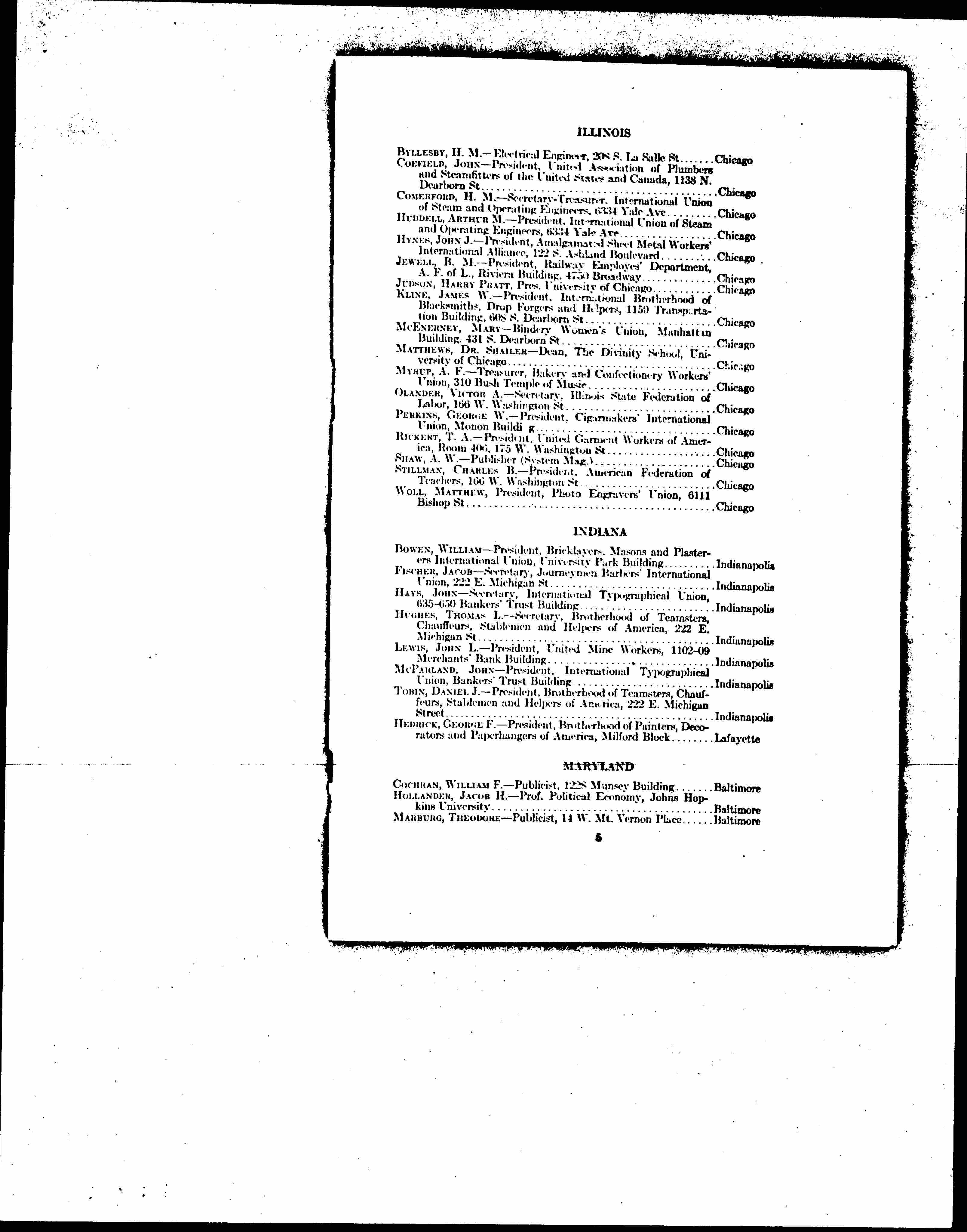 JOHNSTON, WILLIAM H. -- President, International Association of Machinists, Machinists' Building, 9th and Mt. Vernon Place, N.W. ... Washington