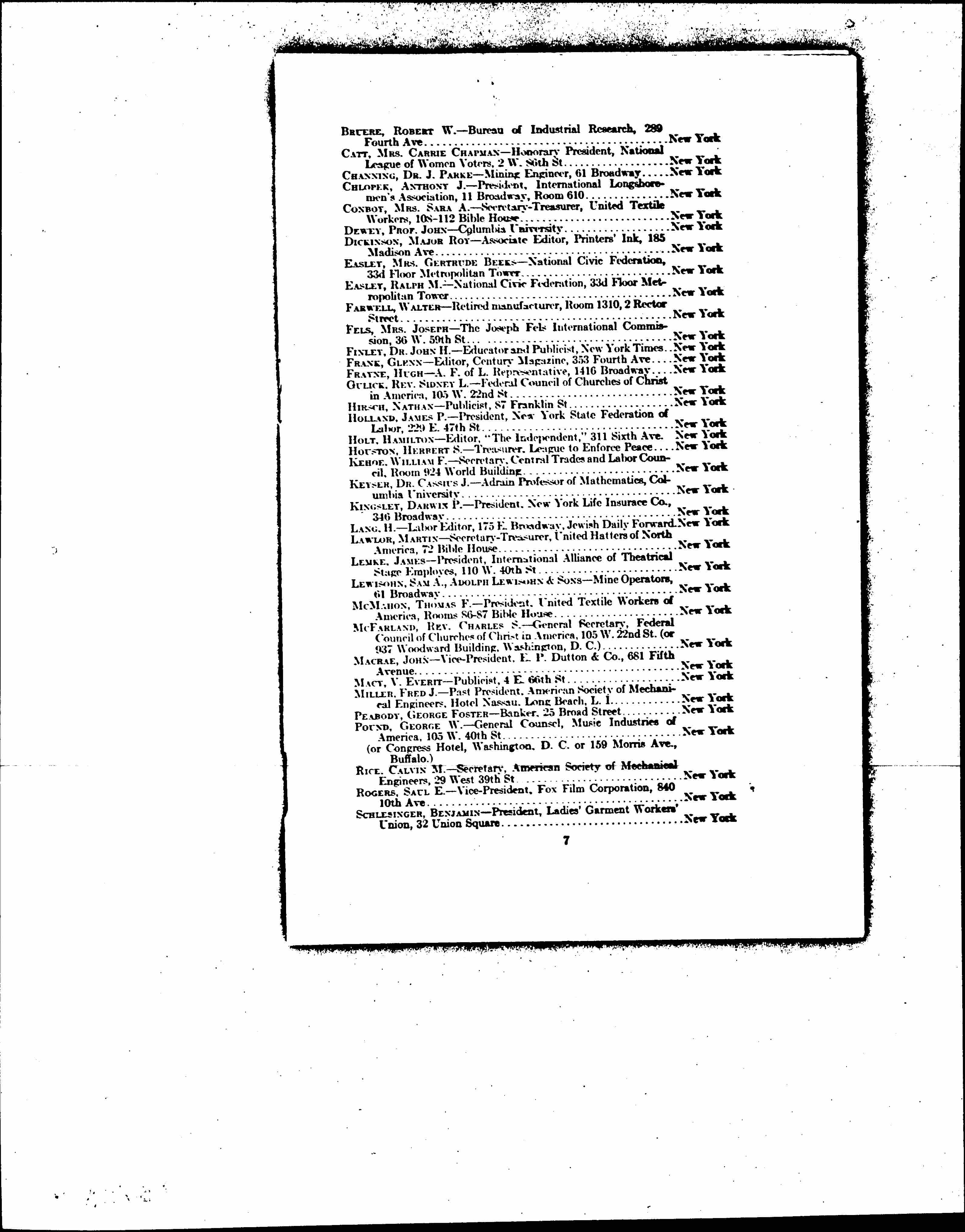 SCHLESINGER, BENJAMIN -- President, Ladies' Garment Workers' Union 32 Union Square ... New York [page 8]