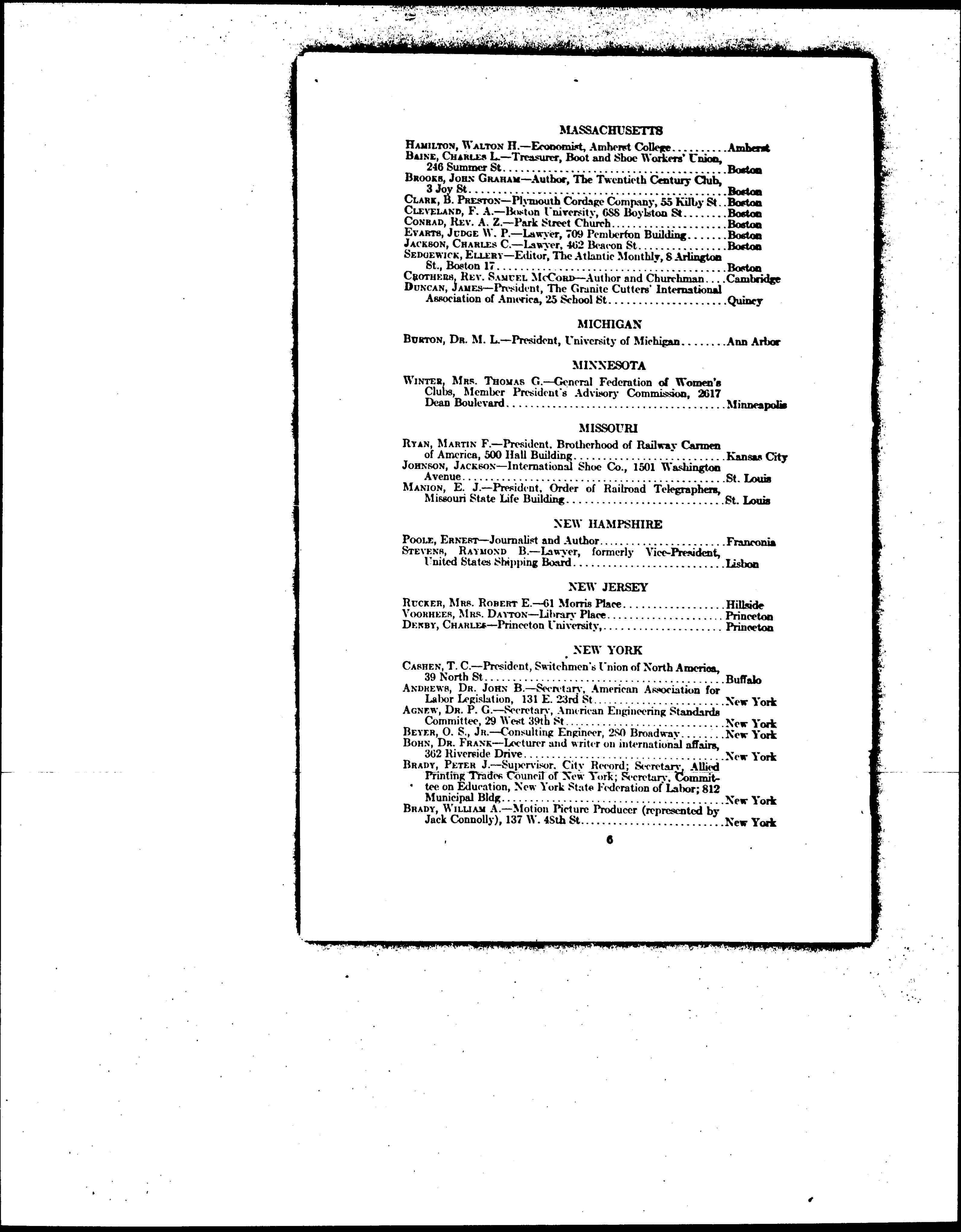 CONBOY, MRS. SARA A. -- Secretary-Treasurer, United Textile Workers, 108-112 Bible House ... New York