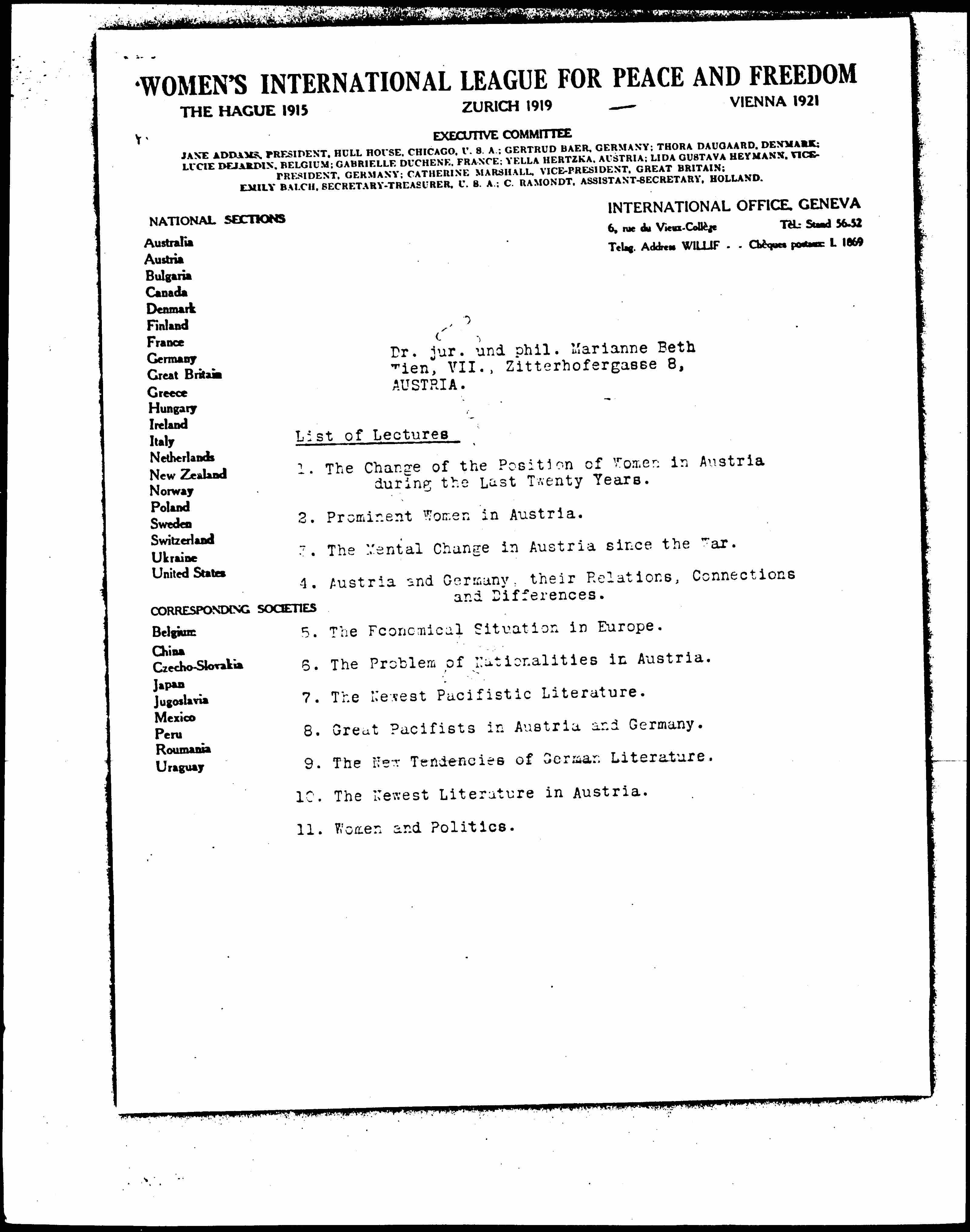 1. The Change of the Position of Women in Austria during the Last Twenty Years.2. Prominent Women in Austria.