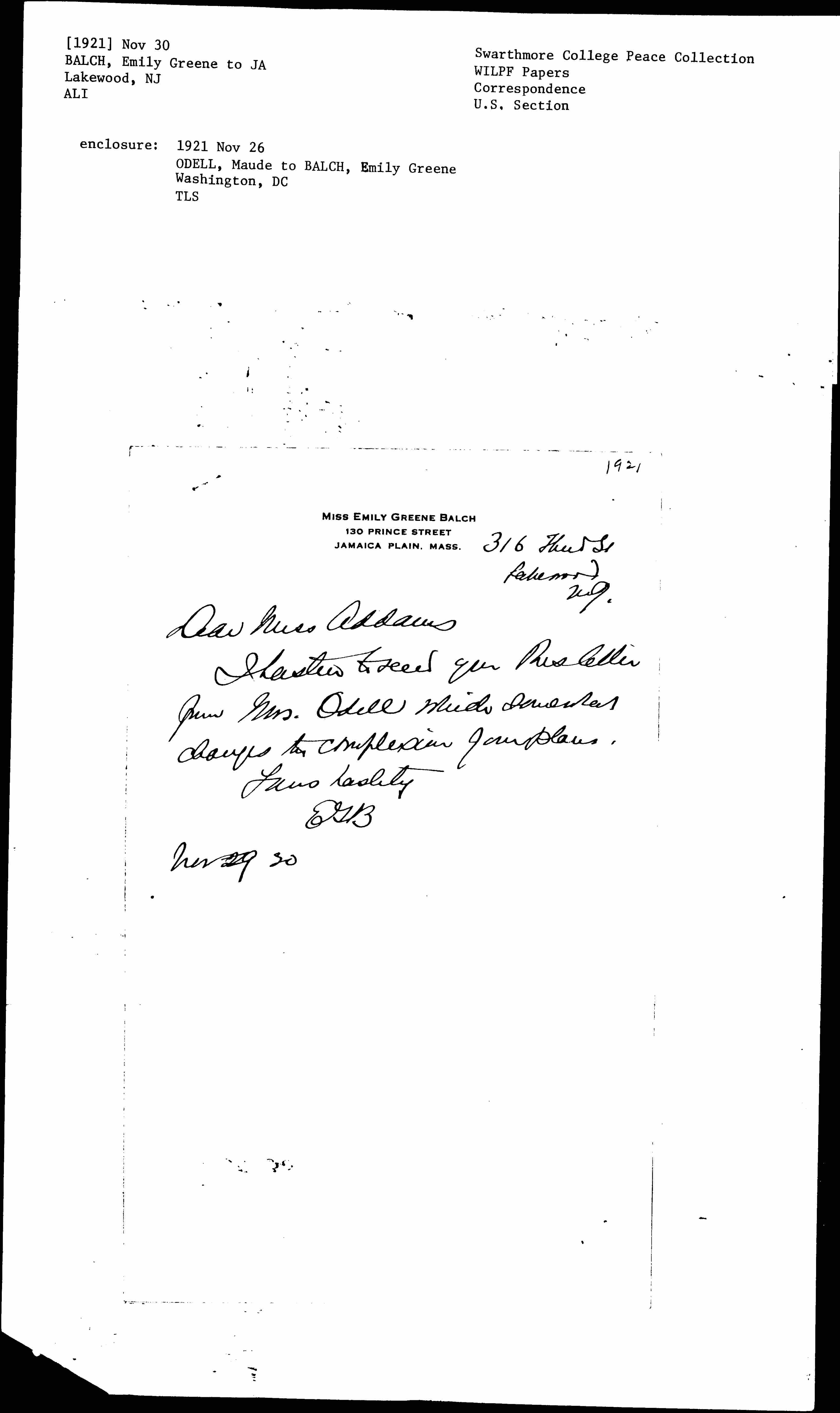 I hasten to send you this letter from Mrs. Odell which somewhat changes the complexion of our plans.