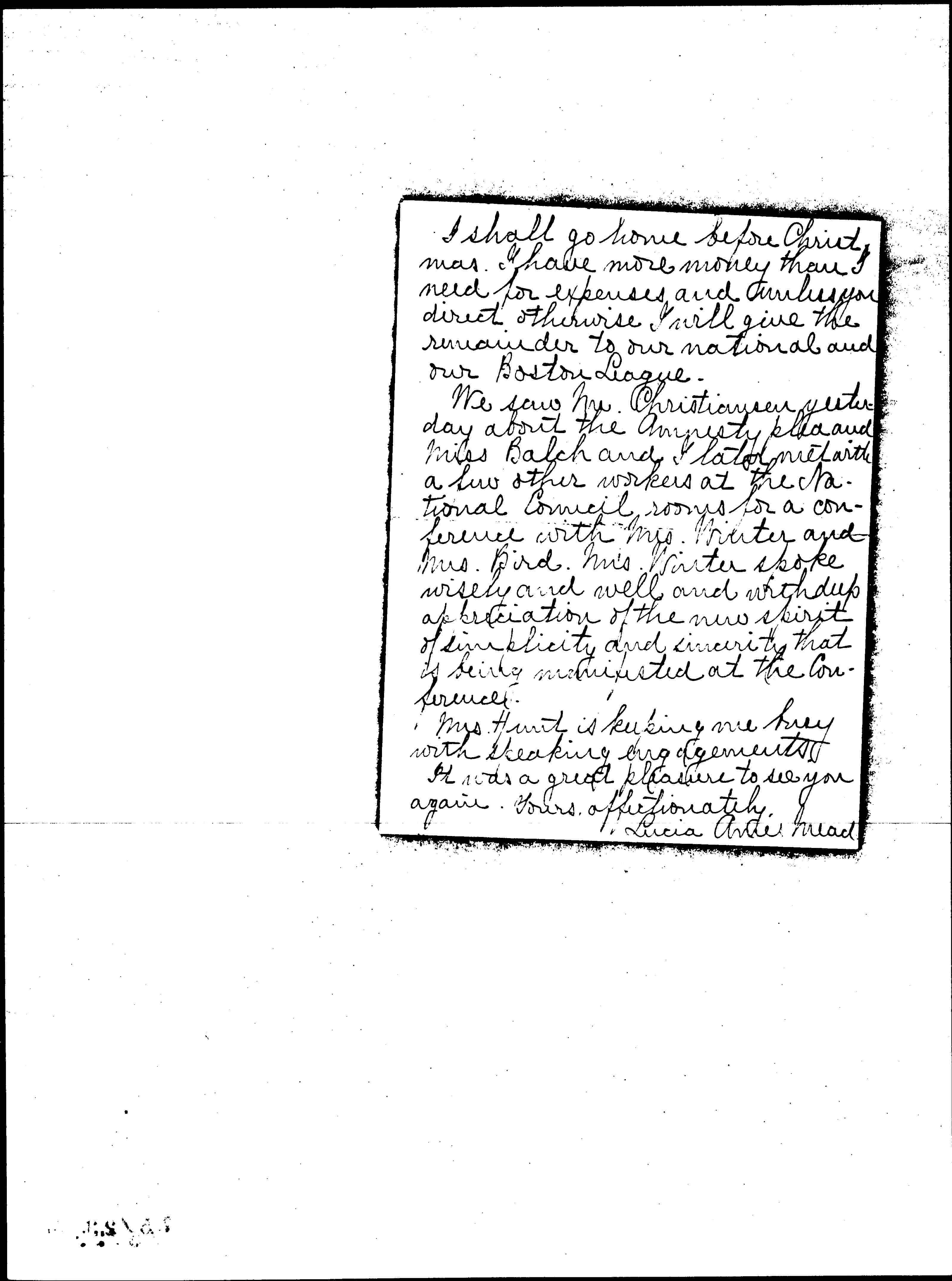 I shall go home before Christmas. I have more money than I need for expenses and unless you direct otherwise I will give the remainder to our national and our Boston League.