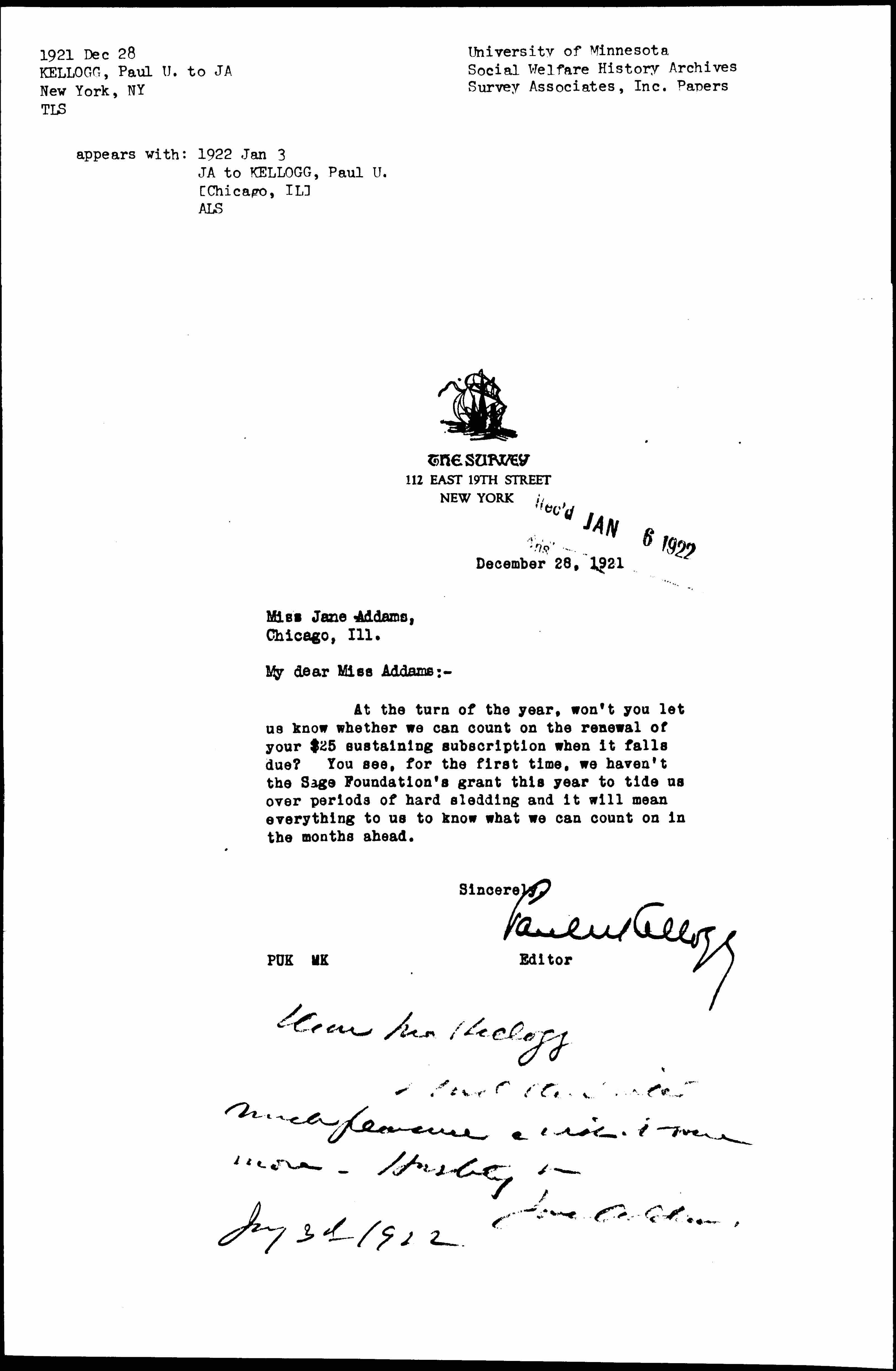 At the turn of the year, won't you let us know whether we can count on the renewal of your $25 sustaining subscription when it falls due? You see, for the first time, we haven't the Sage Foundation's grant this year to tide us over periods of hard sledding and it will mean everything to us to know what we can count on in the months ahead.