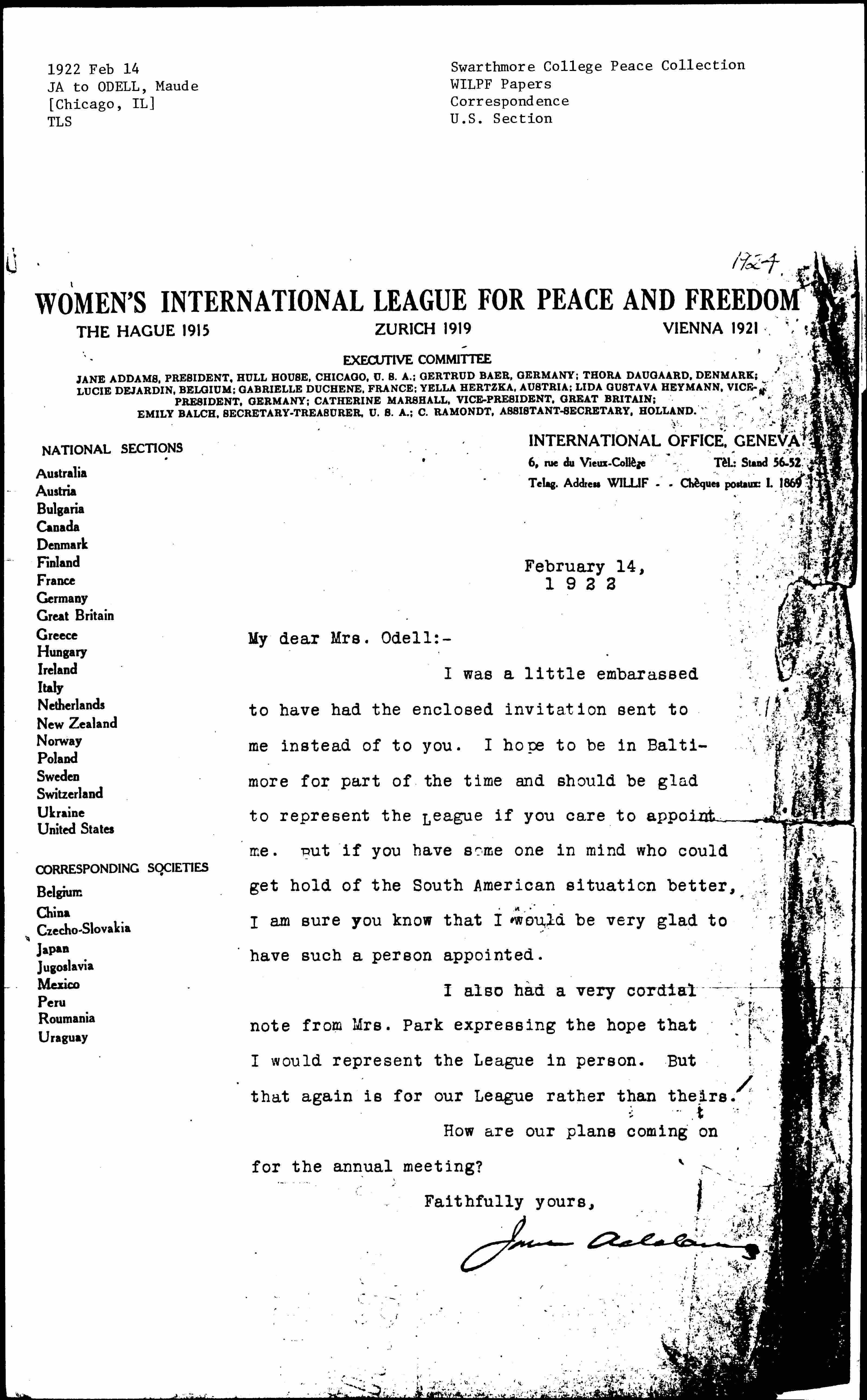 Jane Addams [signed]