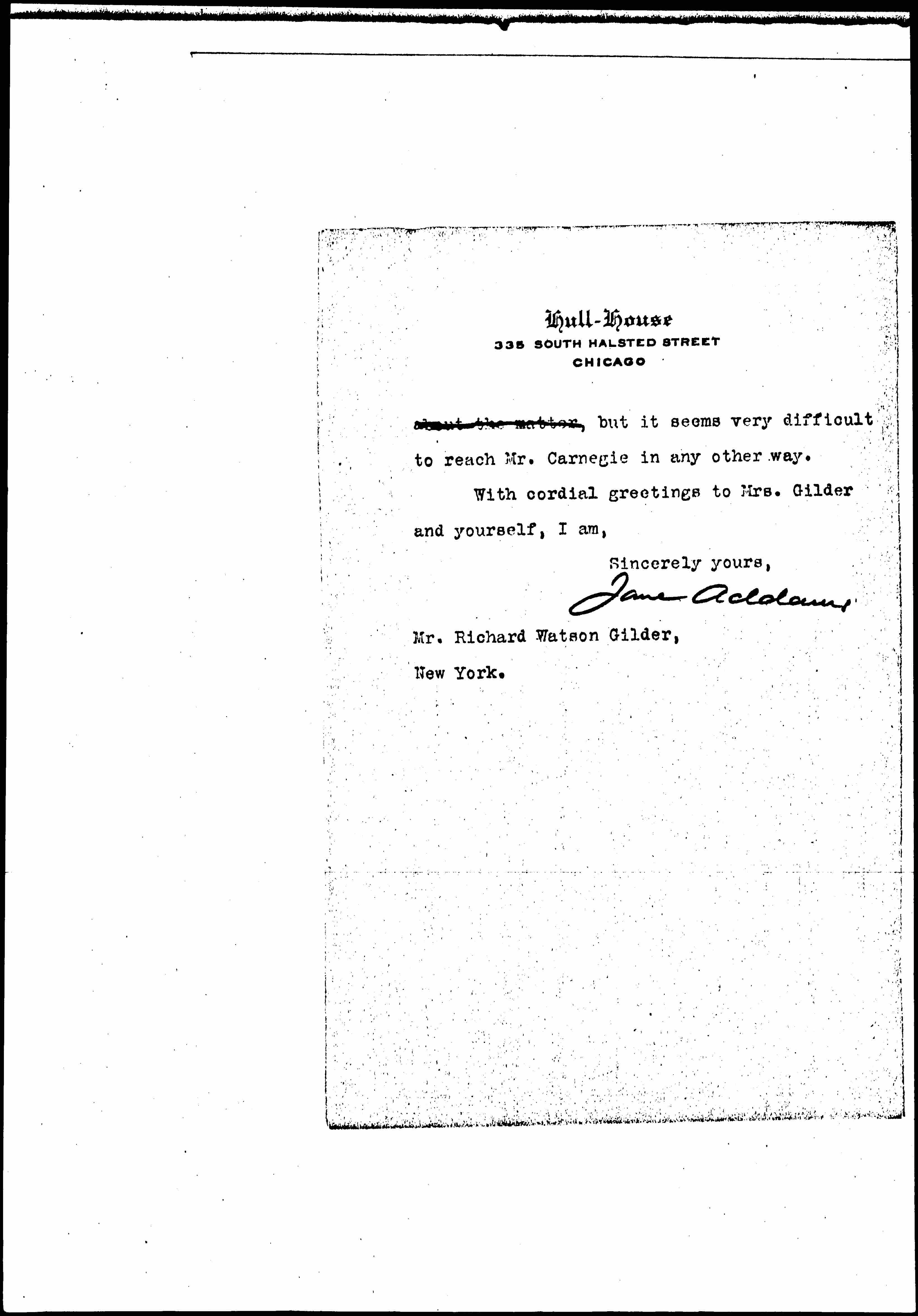 I know it is very awkward to approach Mr. Carnegie in this roundabout way, but I understand so far any appeal to him has failed to get by the secretary. If you could do something for us in getting the matter before him personally, we should all be very grateful to you. I am sorry to trouble you [page 2] about the matter, but it seems very difficult to reach Mr. Carnegie in any other way.