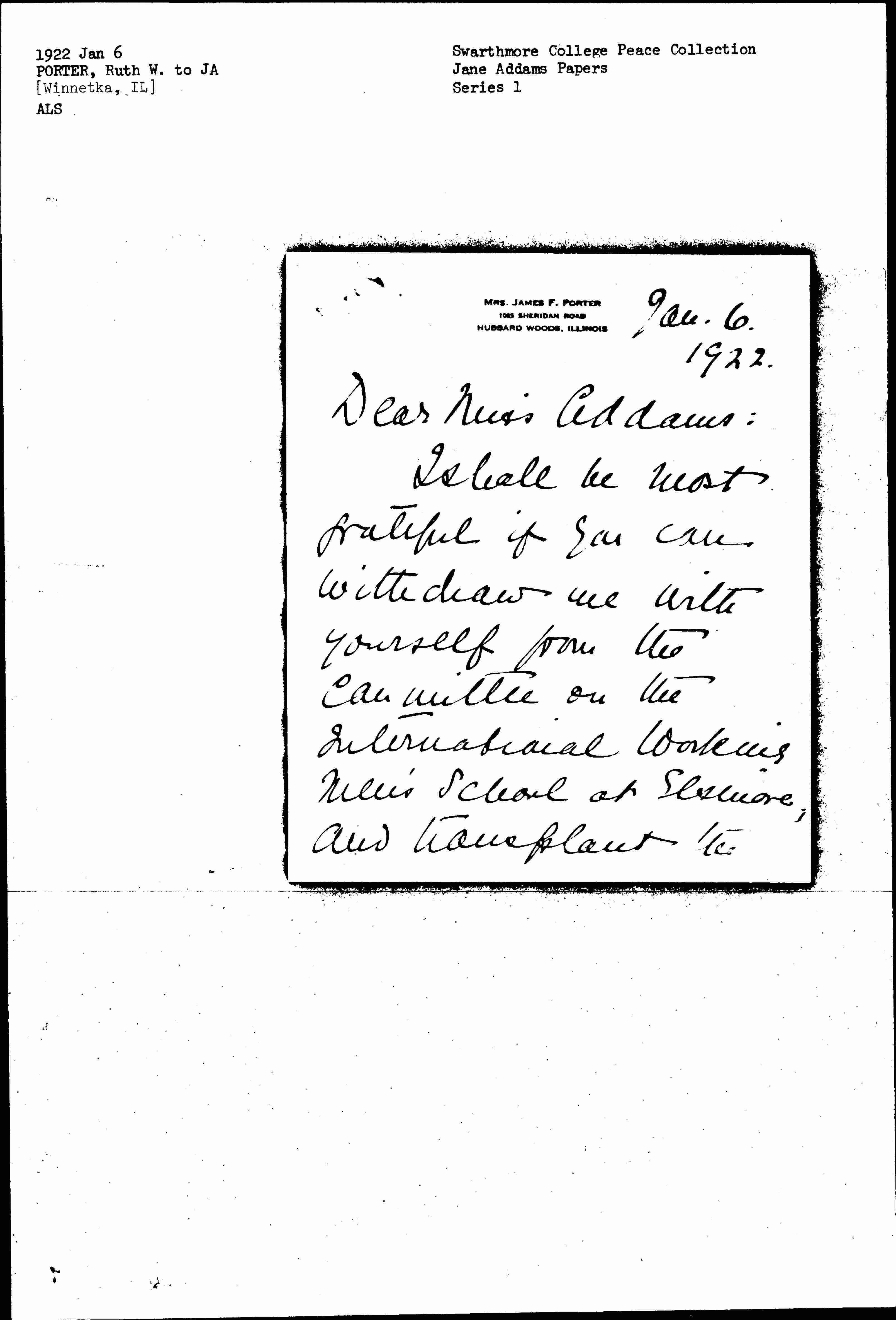 Dear Miss. Addams: