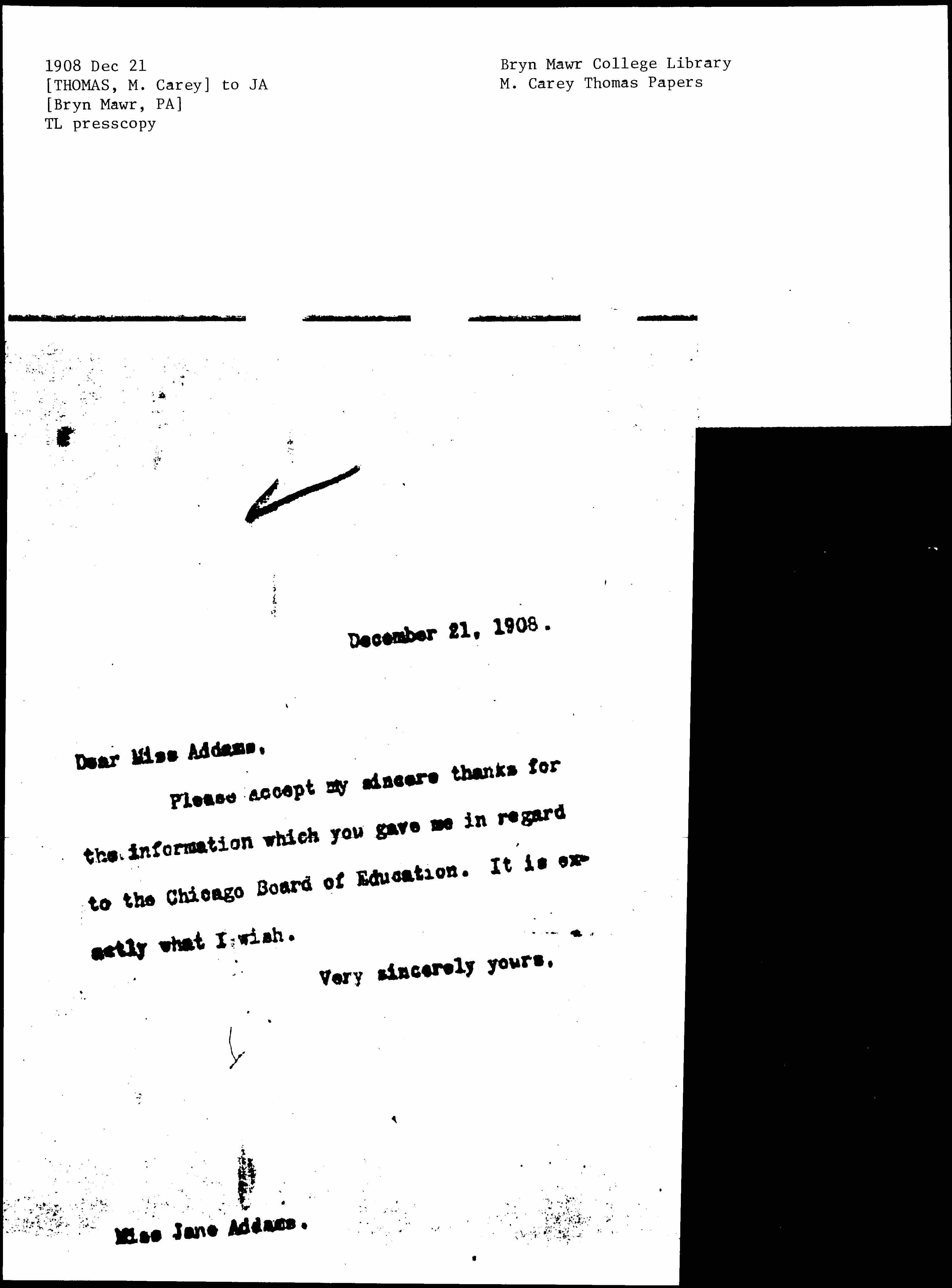 Please accept my sincere thanks for the information which you gave me in regard to the Chicago Board of Education. It is exactly what I wish.