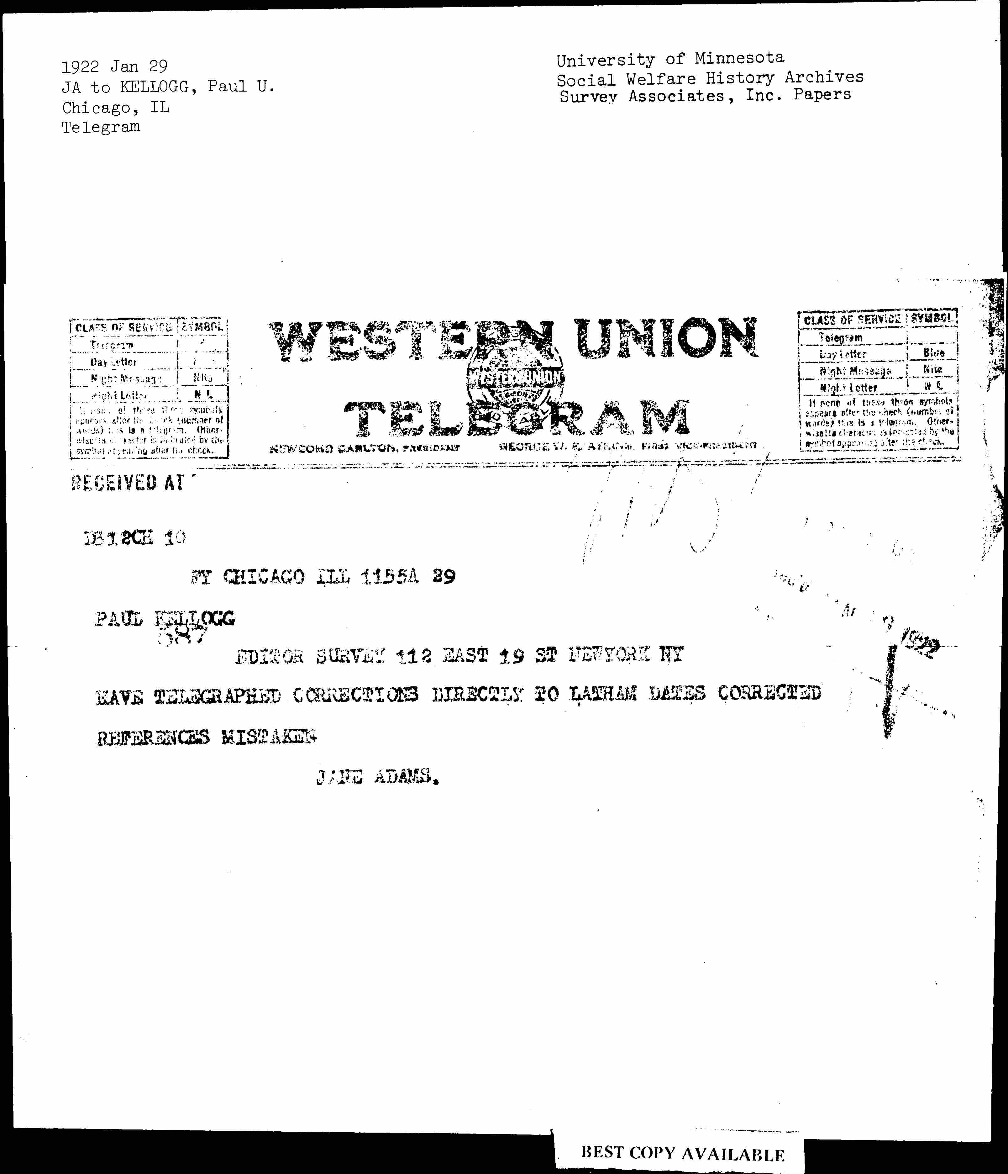 HAVE TELEGRAPHED CORRECTIONS DIRECTLY TO LATHAM DATES CORRECTED REFERENCES MISTAKES