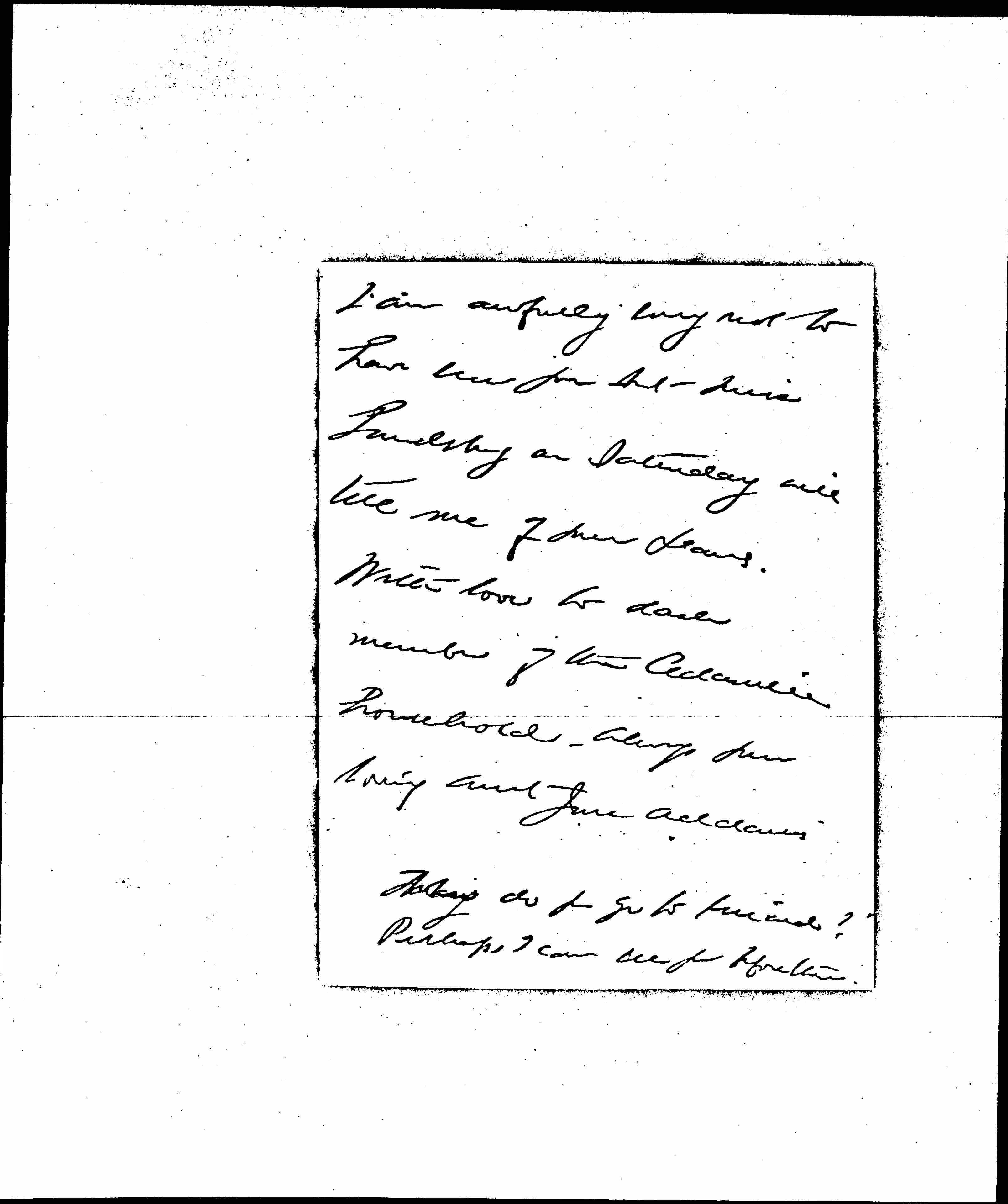 I telephoned you twice yesterday but you were out both times. The Doctor had made such a point that Mary Smith was to be kept quiet that I did not dare suggest leaving her to come in. [page 2] I am awfully sorry not to have seen you but Miss Landsberg on Saturday will tell me of your plans.