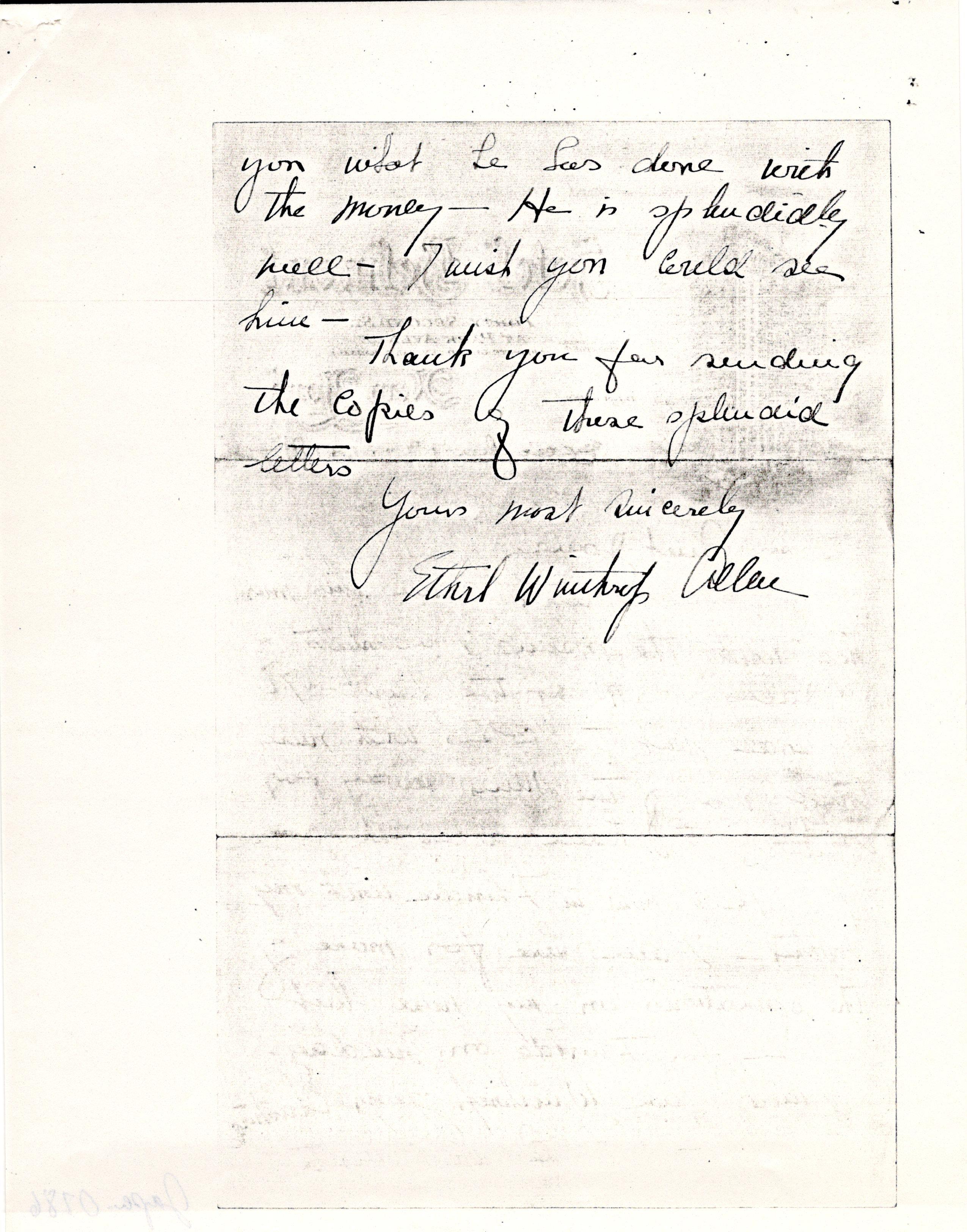 I will give Winthrop your Christmas present & then he will write [page 2] you what he has done with the money. He is splendidly well. I wish you could see him.