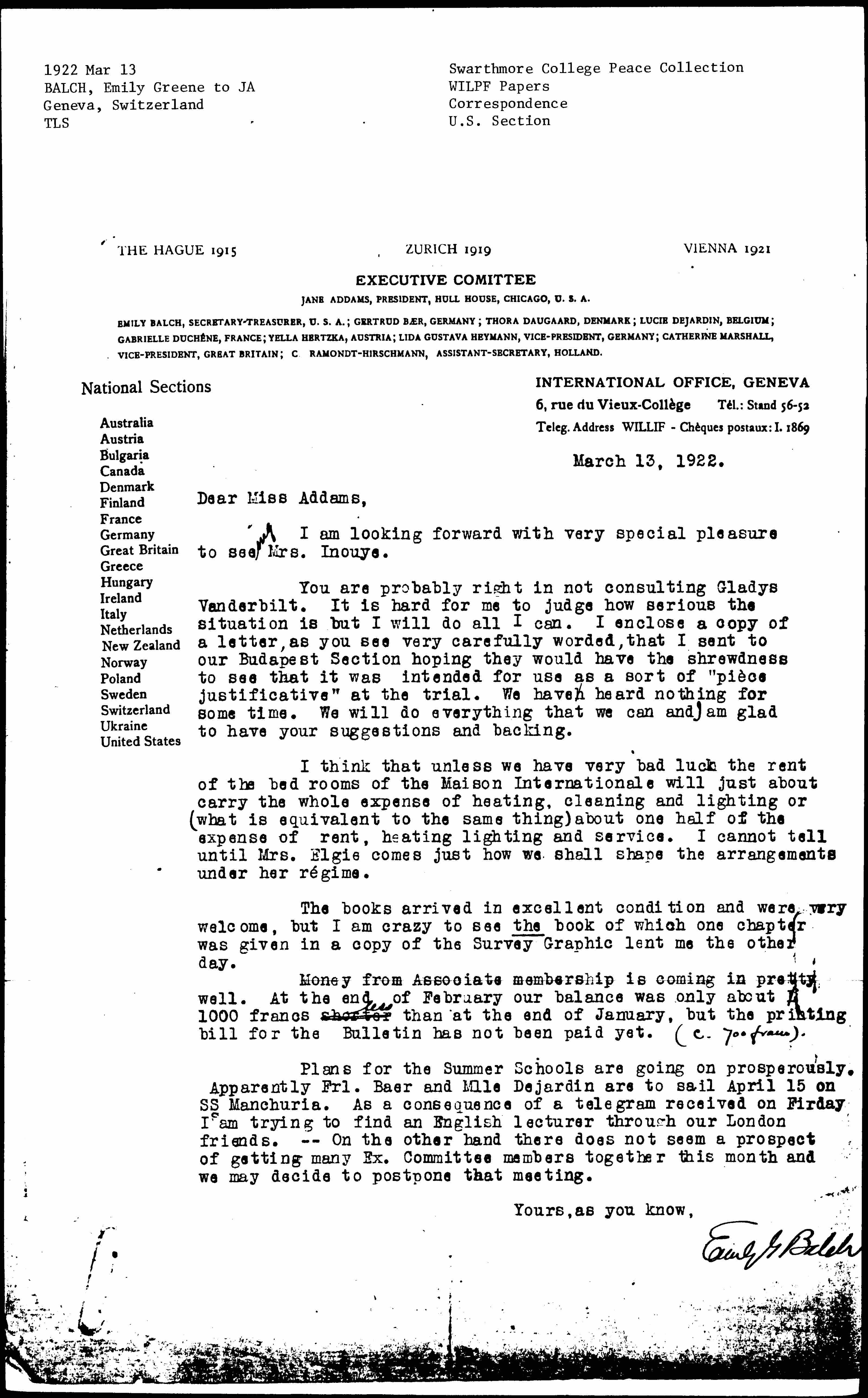 Emily G Balch [signed]