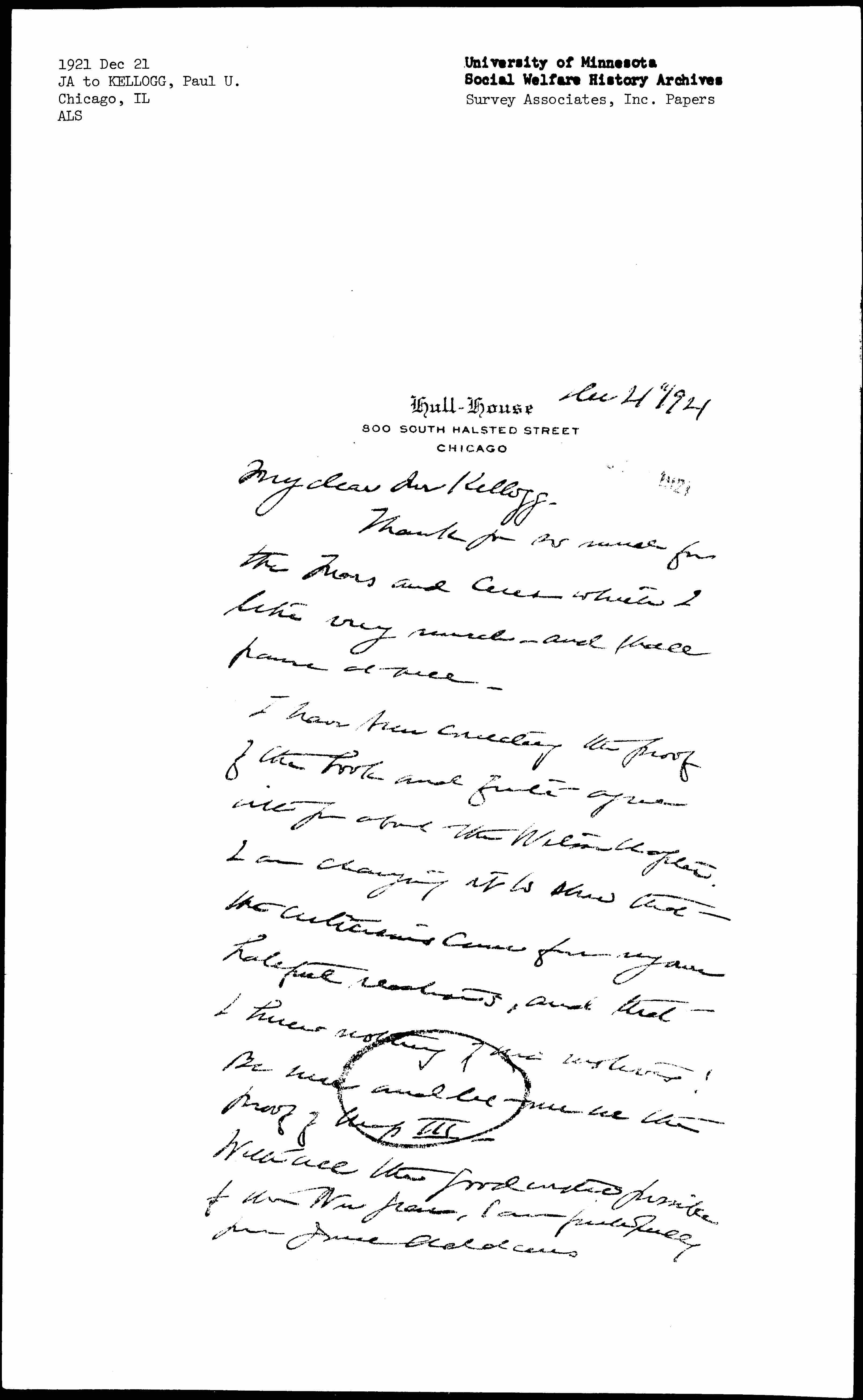 With all the good wishes possible for the New Year, I am faithfully yours Jane Addams