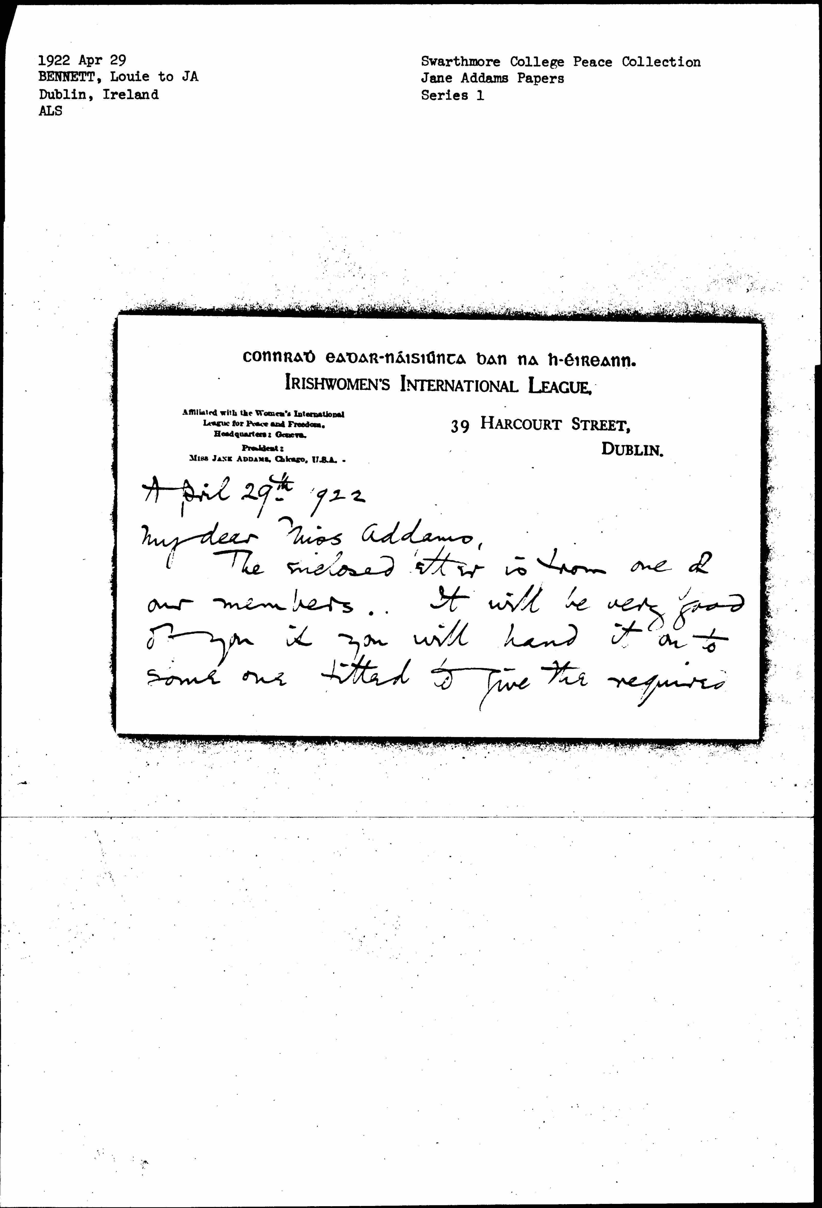 The enclosed letter is from one of our members. It will be very good of you if you will hand it on to someone fitted to give the required [page 2] information.