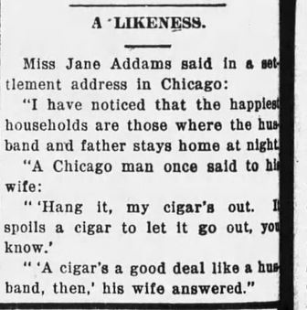 "'A cigar's a good deal like a husband, then,' his wife answered."