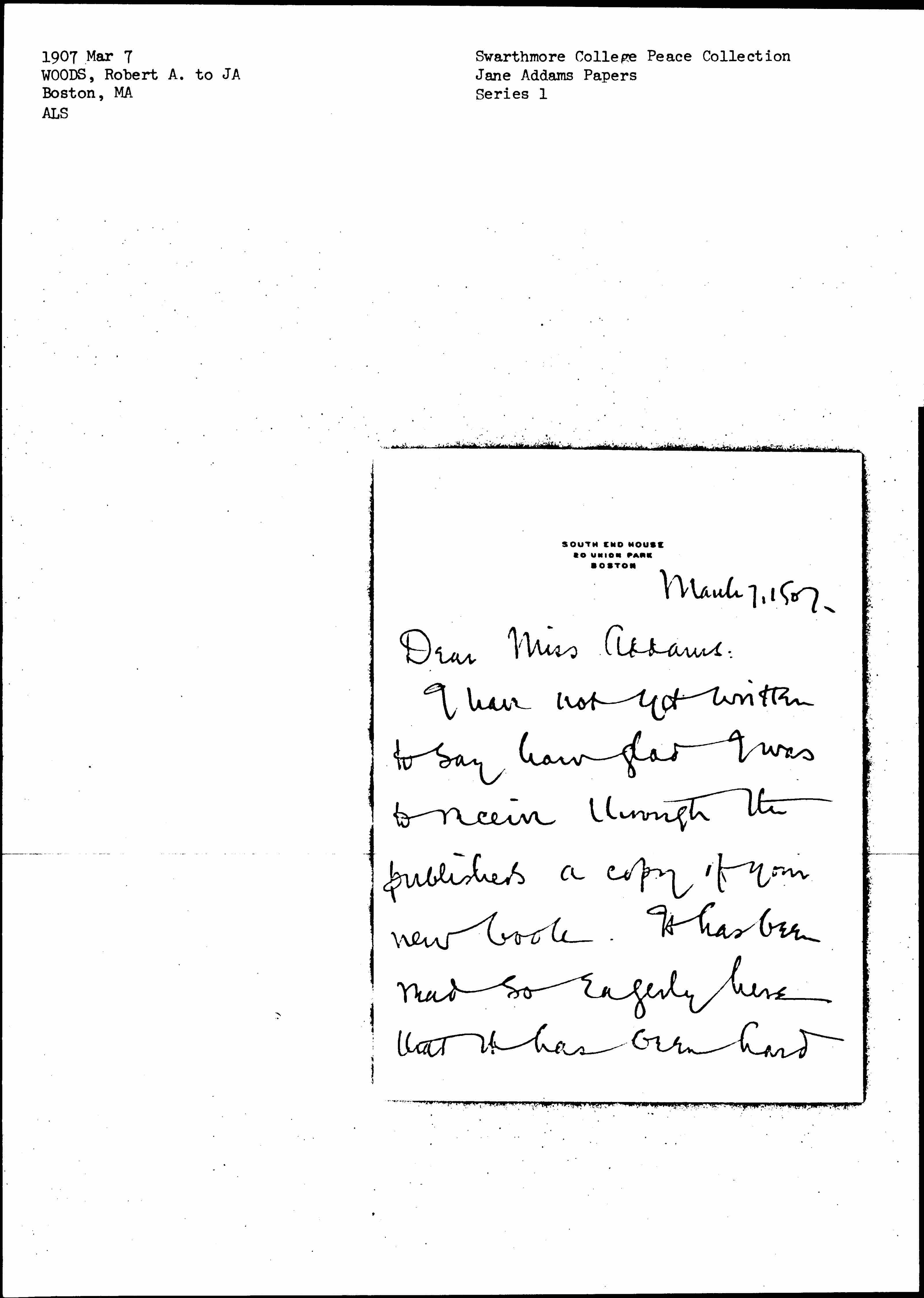 Dear Miss Addams: