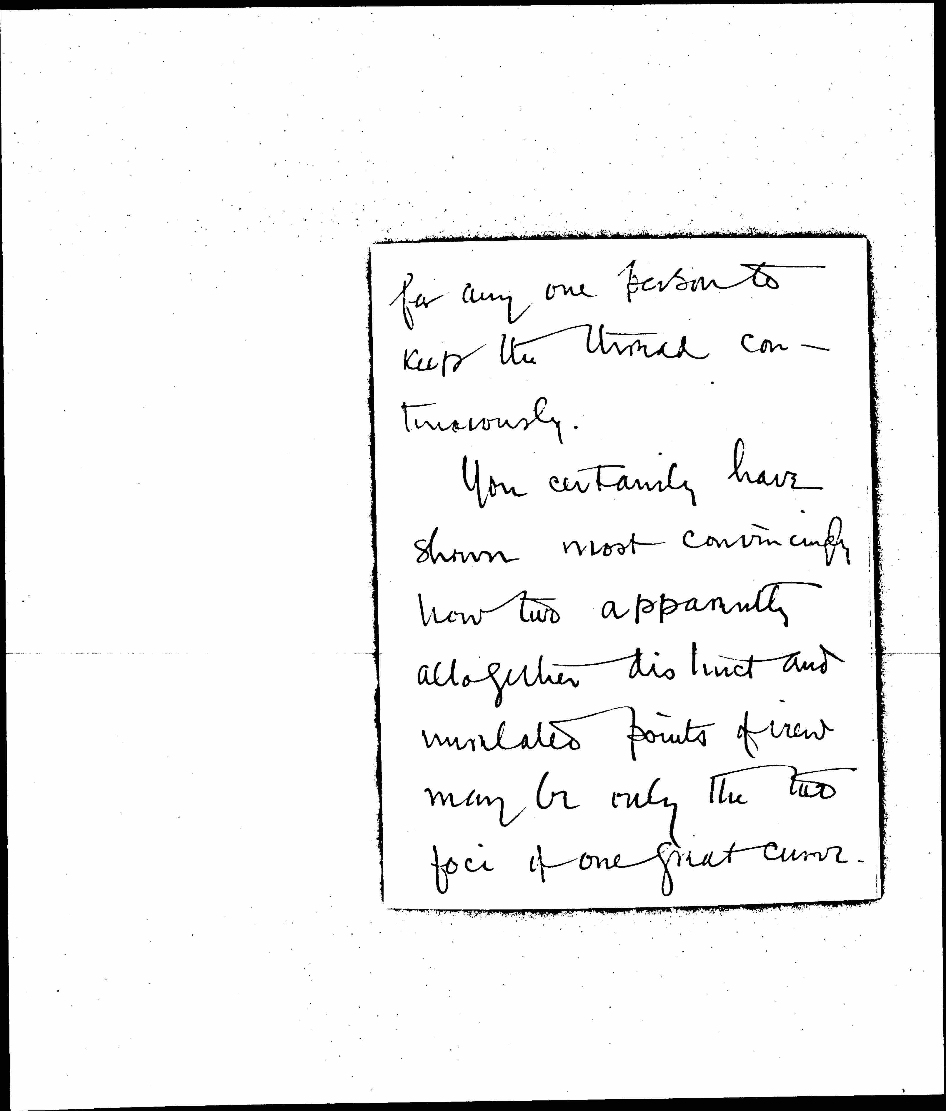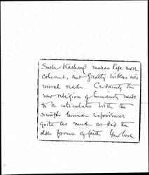 You certainly have shown most convincingly how two apparently altogether distinct and unrelated points of view may be only the two foci of one great curve. [page 3] Such teaching makes life more coherent, and greatly widens one's moral reach. Certainly the new religion of humanity needs to be articulated with the simple human experiences quite as much as did the older forms of faith. Your book [page 4] stands out all the more for having done this all the more because it does not say so.