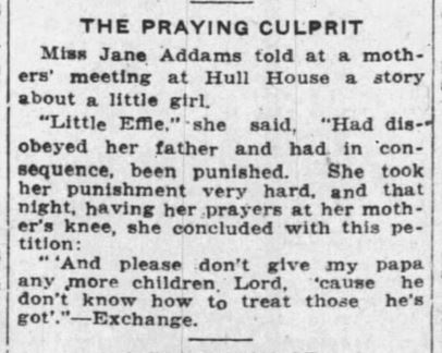 "'And please don't give my papa any more children, Lord, 'cause he don't know how to treat those he's got.'" -- Exchange.