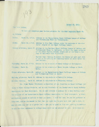 Tuesday afternoon, March 17 Address to the Maryland Equal Suffrage League of College and Professional Women in Baltimore, to which the women students of the Johns Hopkins Medical School and of the Woman's College of Baltimore will be invited.