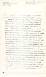 I expect my beloved spouse almost [any day] now. He says he will stay three weeks ([when?] likely he will stay three days.) One of his [page 3] precious beloved cars is here, shrouded by my cautious self in my best sheets, hastily sewed together. Not for one million dollars would I use it. I am a sworn enthusiast over Fords. For my country. They please my sense of fitness. And bless 'em I can pile all the children and animals I want into them. We have acquired, by now quite a menagerie. But heartbreaking as it may be, I shall divest myself of them and leave them in kind hands when I [leave]. All but the birds. We have accumulated four and I guess we'll take them.