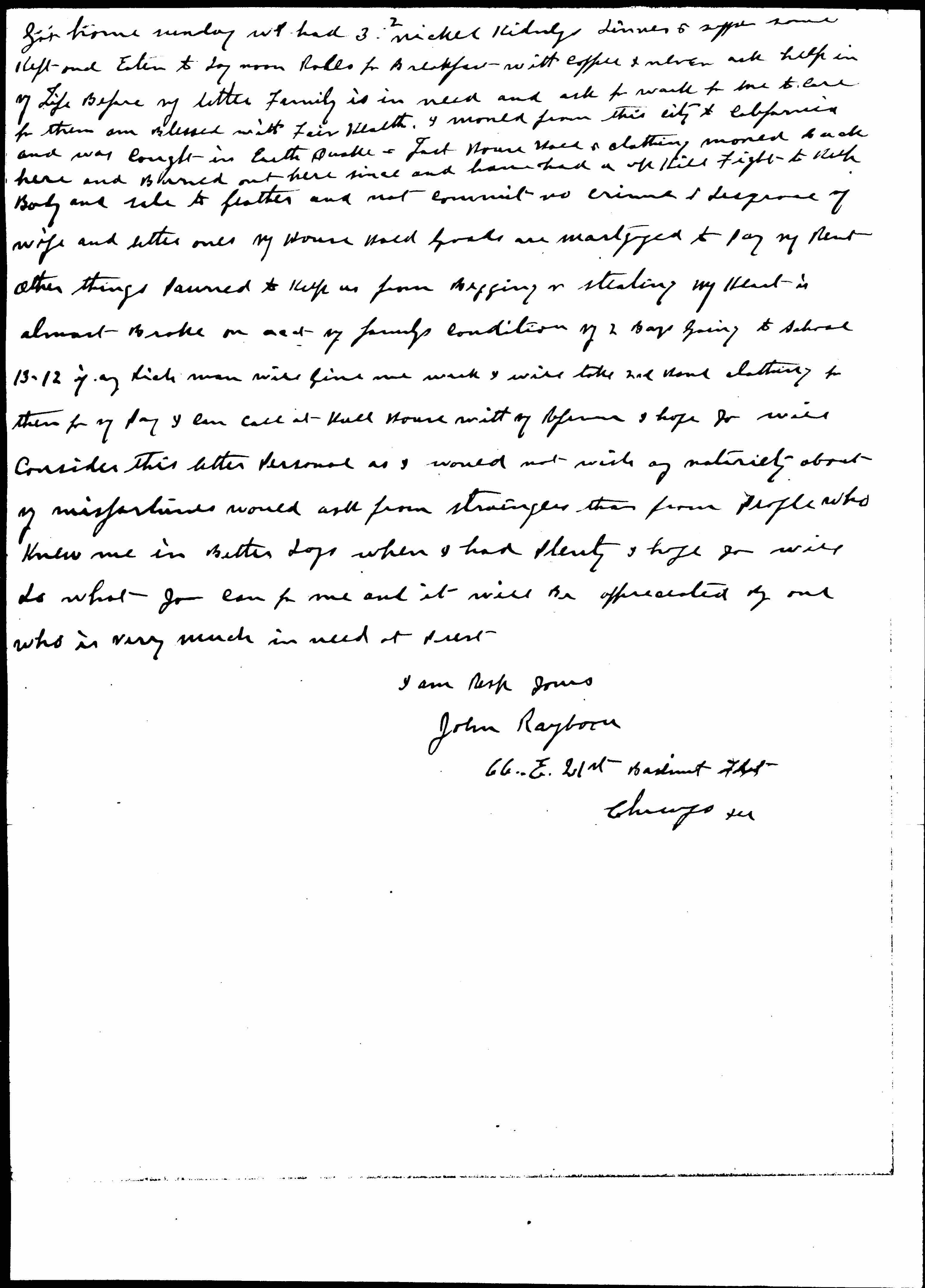 John Rayborn to Jane Addams and Margaret Dreier Robins, January 27, 1908