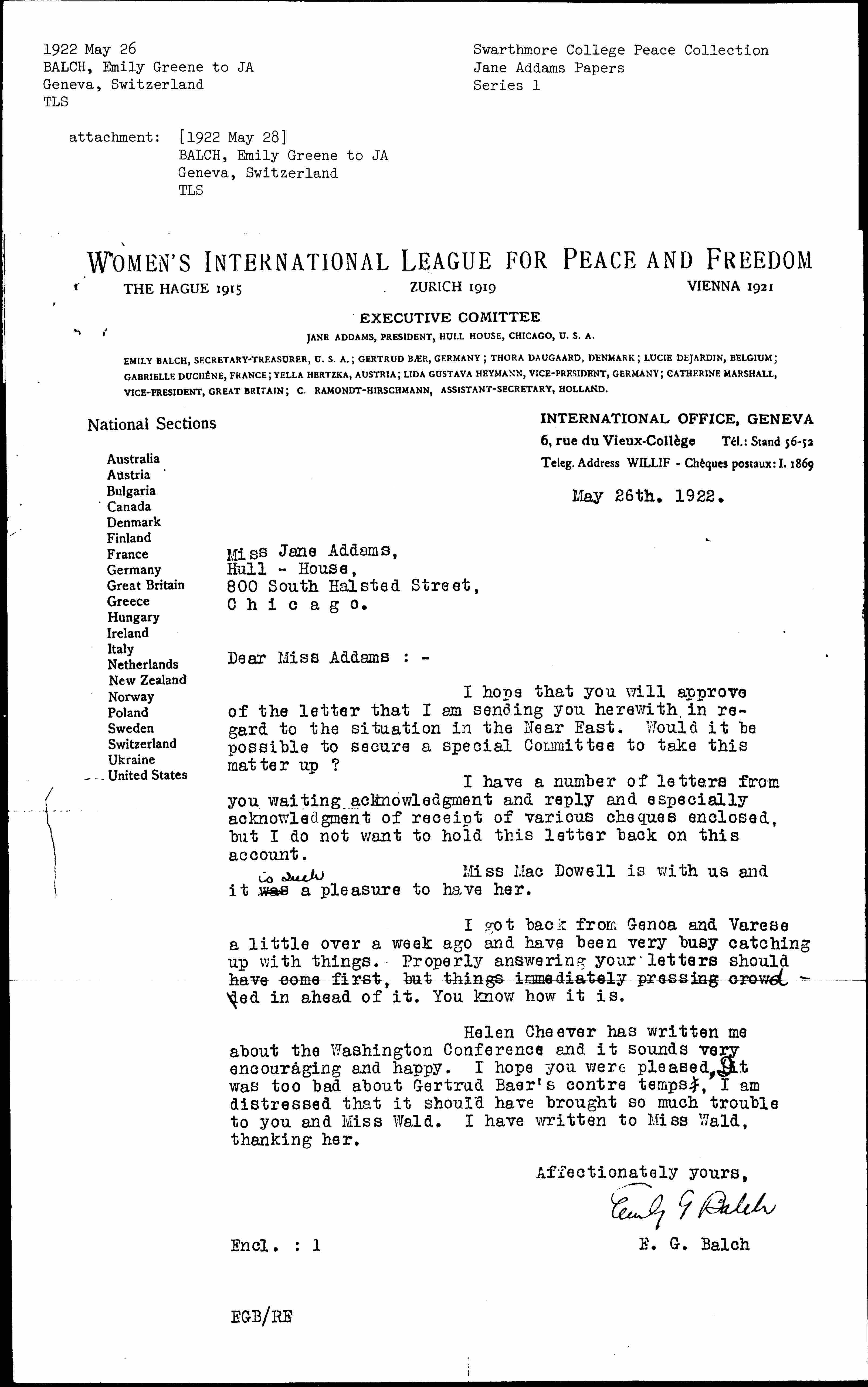 Helen Cheever has written me about the Washington Conference and it sounds very encouraging and happy. I hope you were pleased. It was too bad about Gertrude Baer's contre temps. I am distressed that it should have brought so much trouble to you and Miss Wald. I have written to Miss Wald, thanking her.