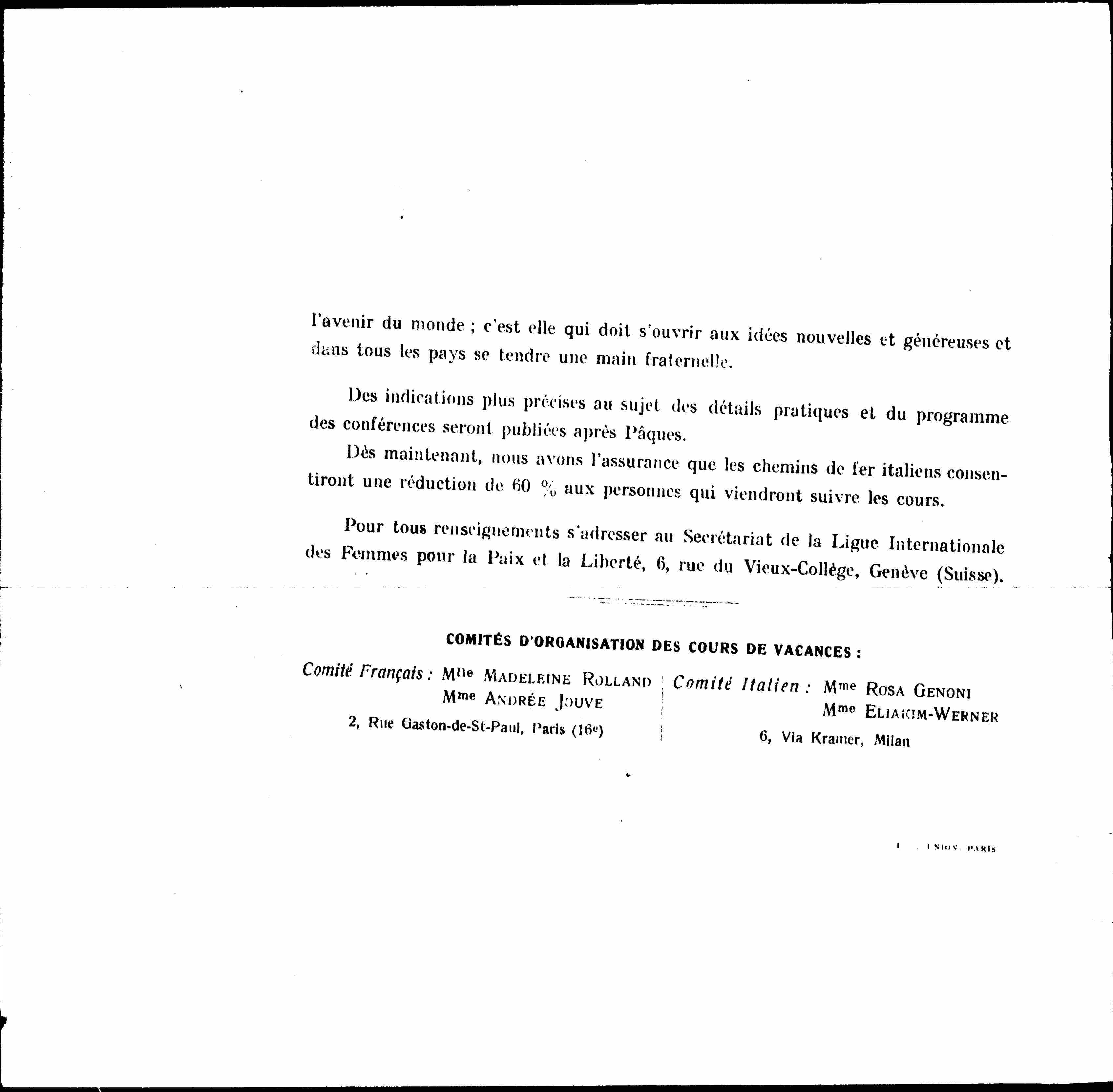 For all information, contact the Secretariat of the Women's International League for Peace and Freedom, 6, rue du Vieux-Collège, Geneva (Switzerland).