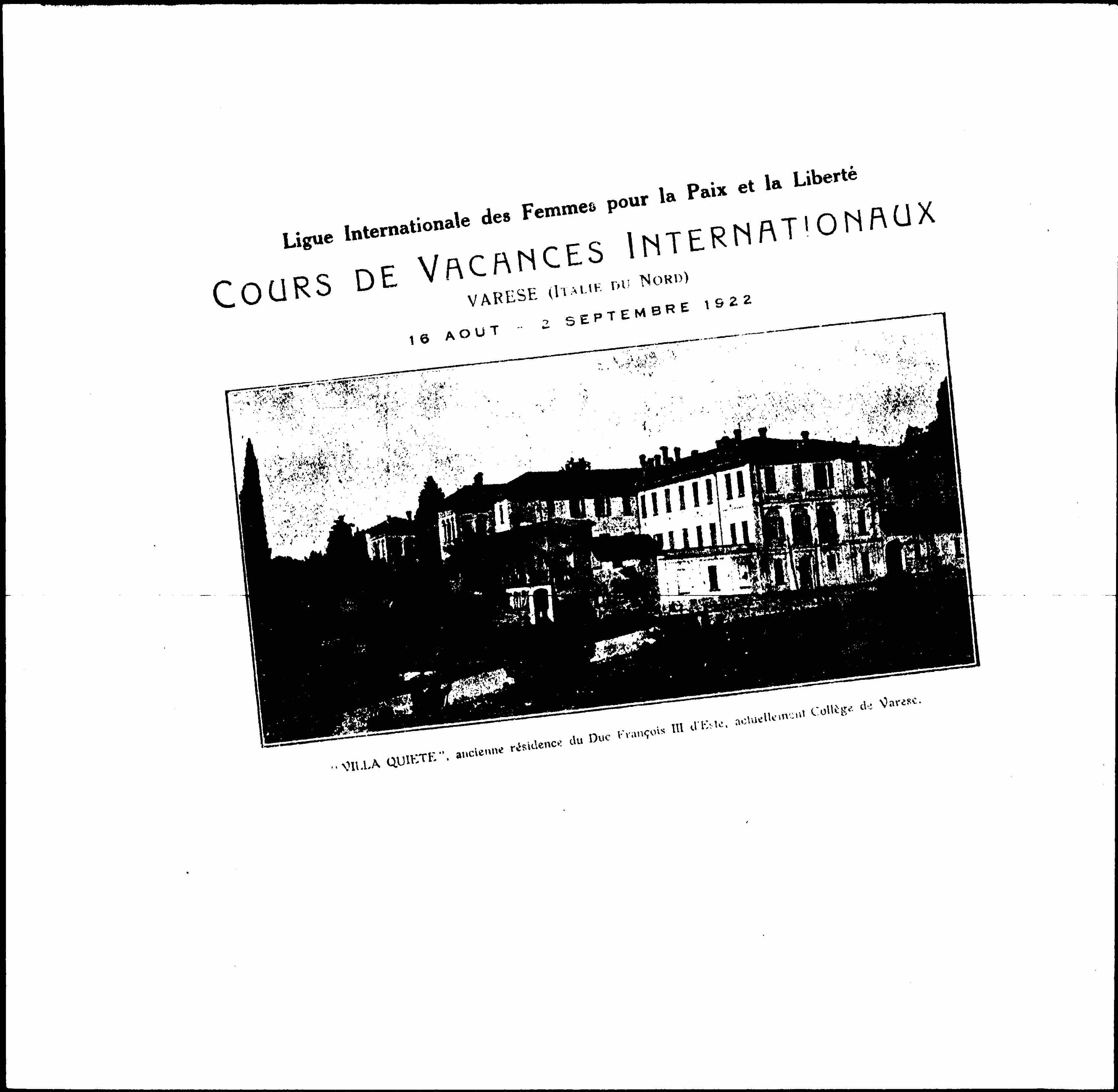 The Women's International League for Peace and Freedom, encouraged by the success of the vacation courses it organized last year in Austria, in Salzburg, where more than 300 students came to its appeal, is going to renew its effort. She instructed the French Section, in collaboration with the Italian Section, to prepare a new international meeting, in northern Italy, from August 16 to September 2 next.