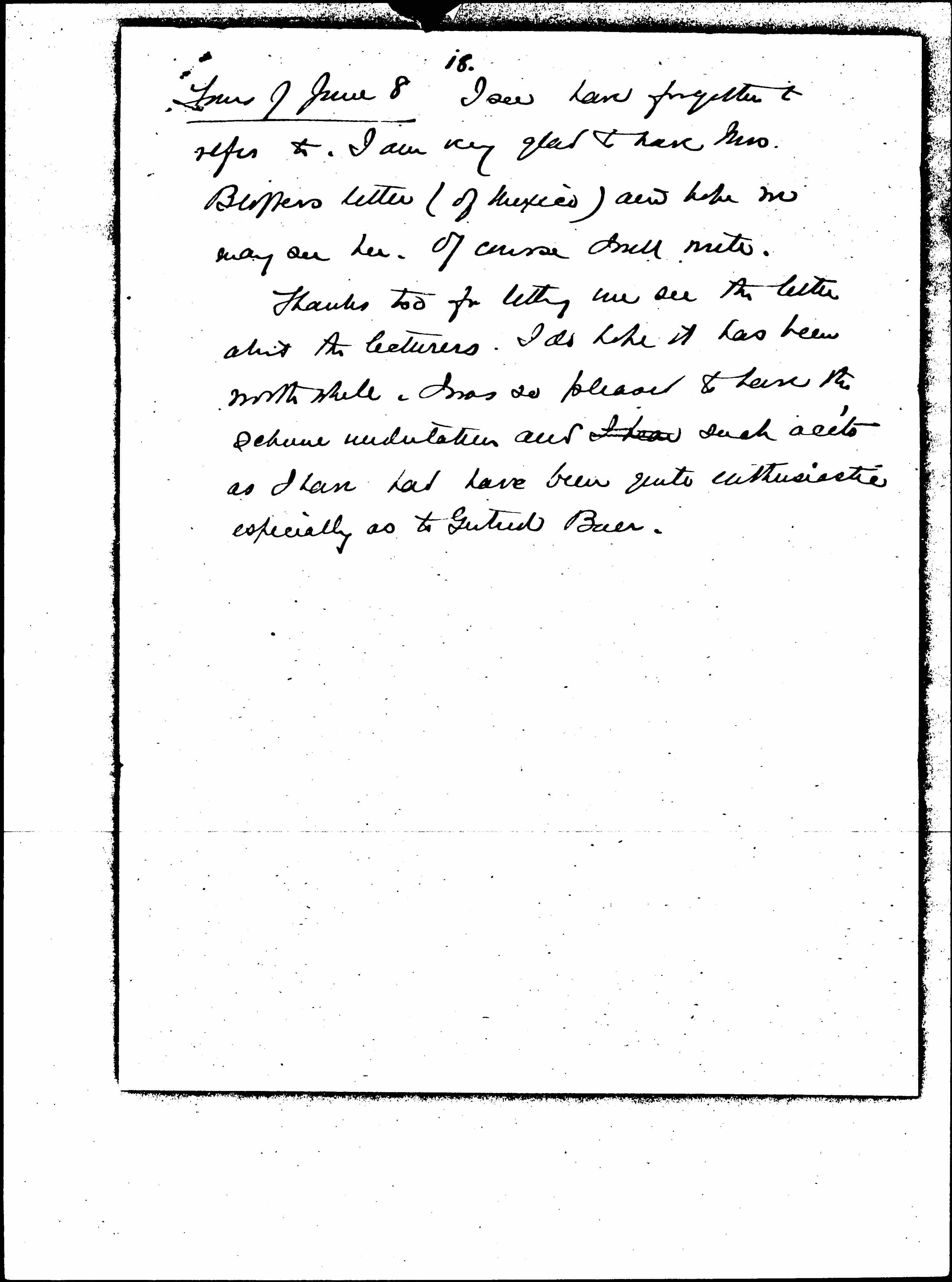 Yours of June 8 I see have forgotten to refer to. I am very glad to have Mrs. Blaffers letter (of Mexico) and hope we may see her. Of course I will write.