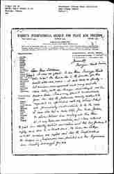 Is the time coming when our movement might & should merge in a men-and-women's international peace body of one type. The International Peace] [illegible] No More War Movement, the Union of Democratic Control (not quite in its old form it seems to me & too much Mr. Morel), the Mr. Libby's Disarmament Council, the Ligue de Droits de l'Homme in Paris, some of the vigorous German peace societies, -- these ought all to be working together. Or do they accomplish more separate? [page 8] I do hate and dread the patriotism of the kind devotion to one's [organization] as an end in itself and ↑that one often sees [illegible] and I try not to fall into it (though↓ when you are [organizing] sec'y you almost have to cultivate [illegible] or acquiesce in some of this ↑it↓). -- So I just put these questions.