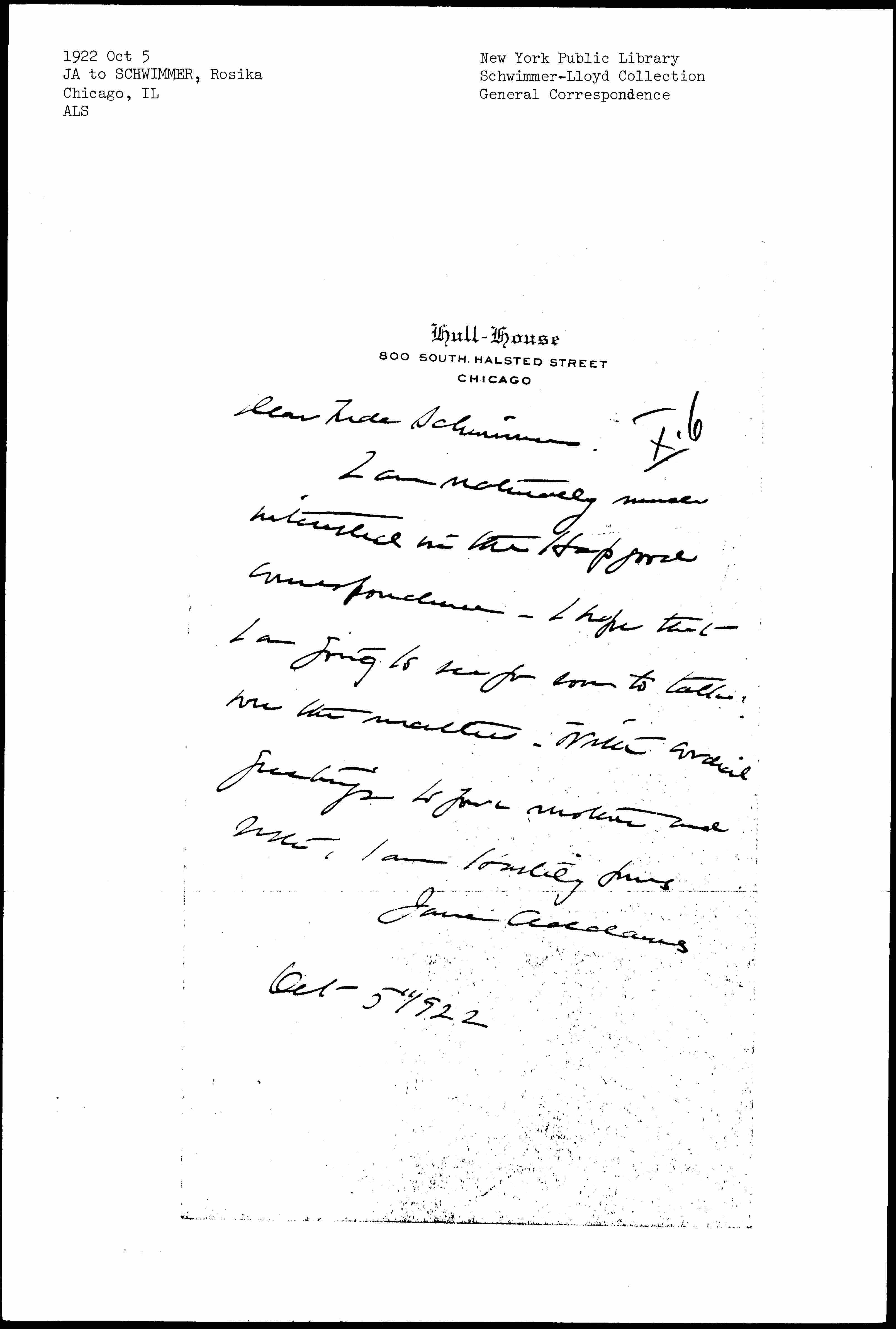 I am naturally much interested in the Hapgood correspondence. I hope that I am going to see you soon to talk over the matter. With cordial greetings to your mother and sister, I am hastily yours