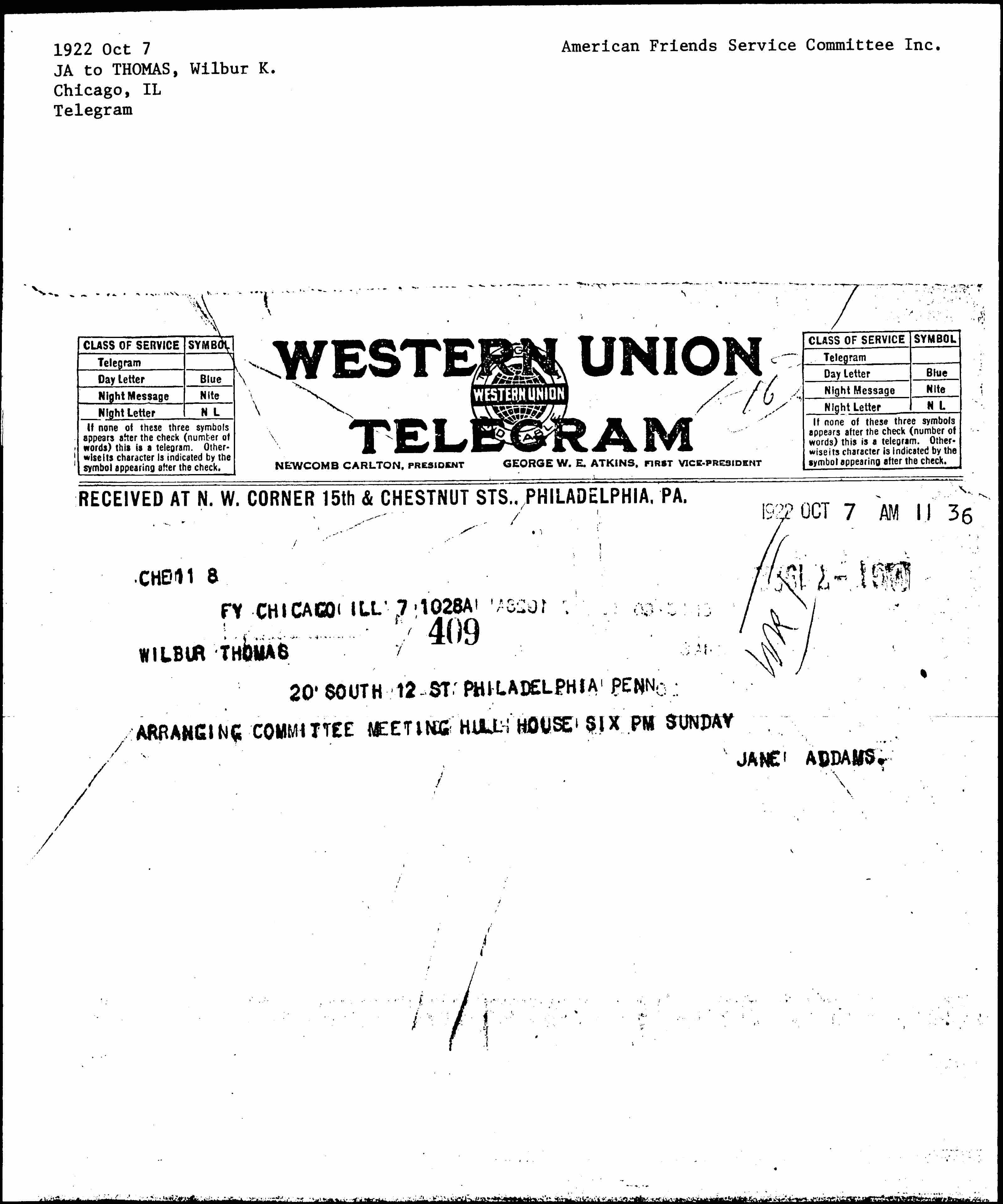 ARRANGING COMMITTEE MEETING HULL HOUSE SIX PM SUNDAY