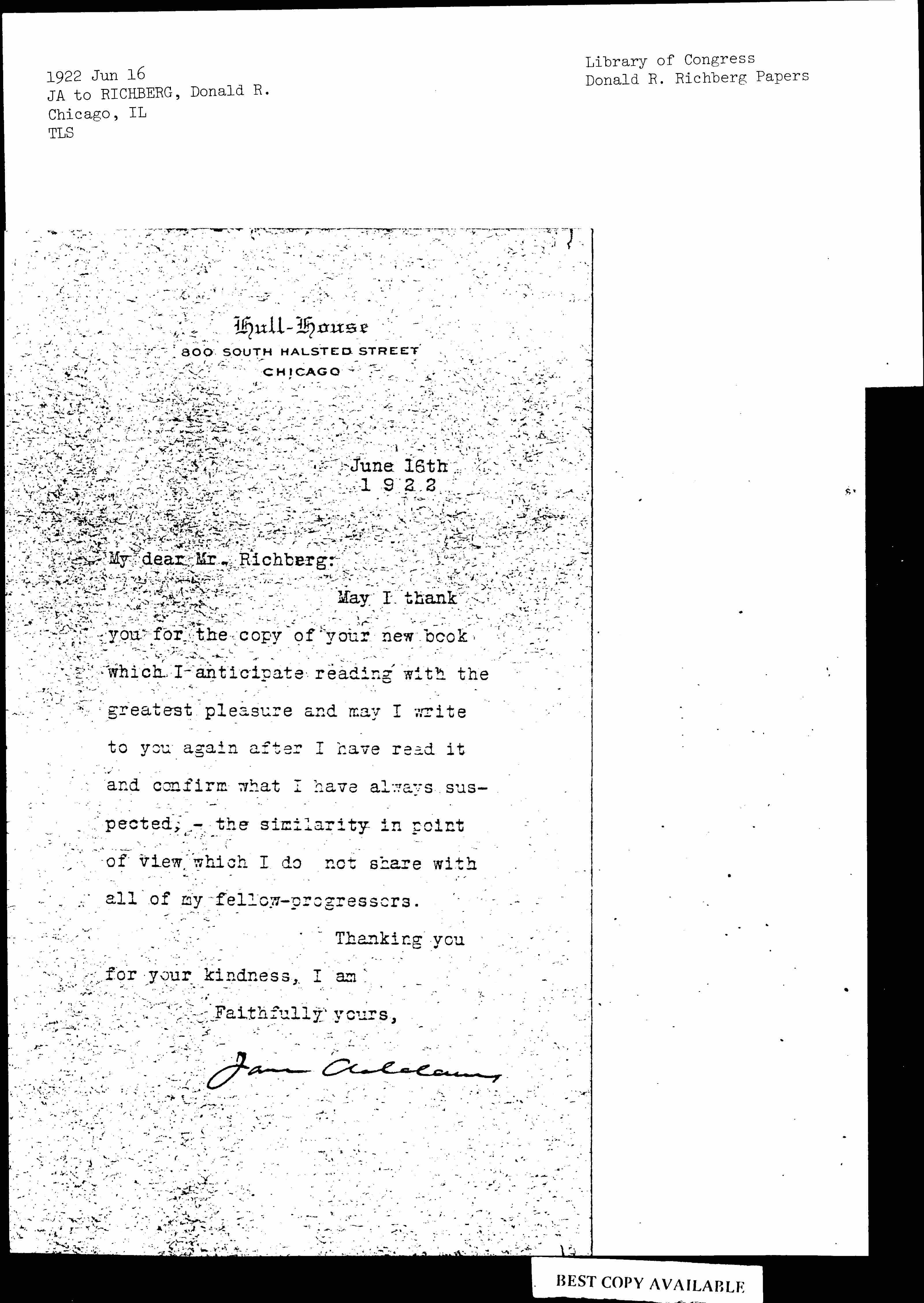 Jane Addams [signed]