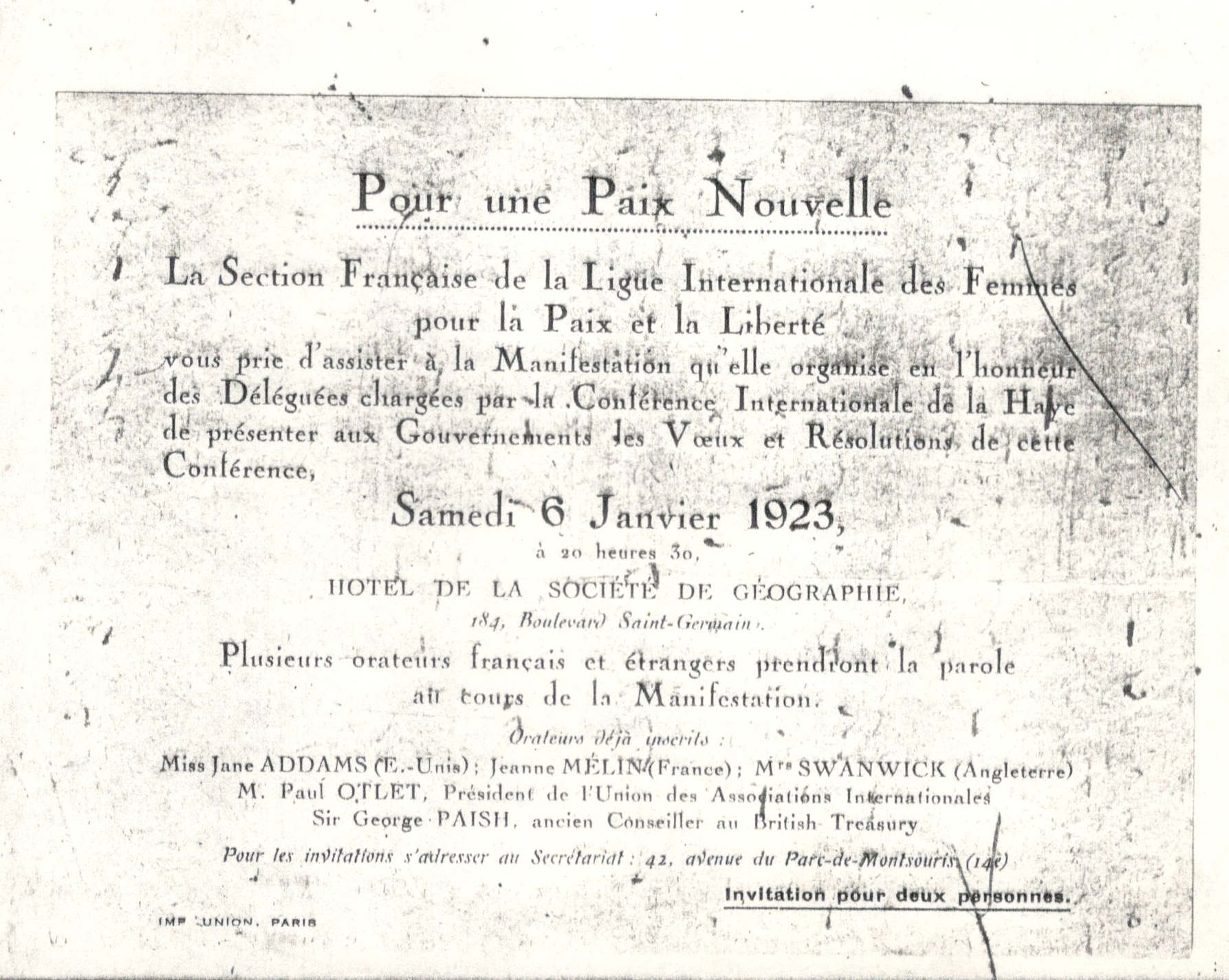 The French Section of the Women's International League for Peace and Freedom asks you to attend the Demonstration it is organizing in honor of the Delegates charged by the International Conference at The Hague to present to the Governments the Wishes and Resolutions of this Conference,