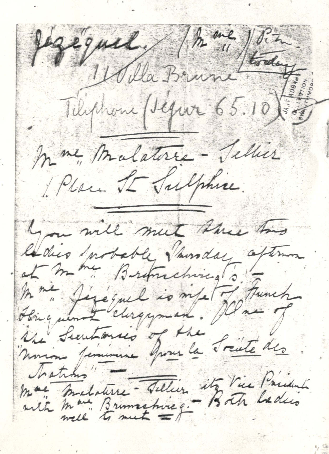 For invitations, contact the Secretariat: 42, avenue de Parc-de-Montsouris (14th)