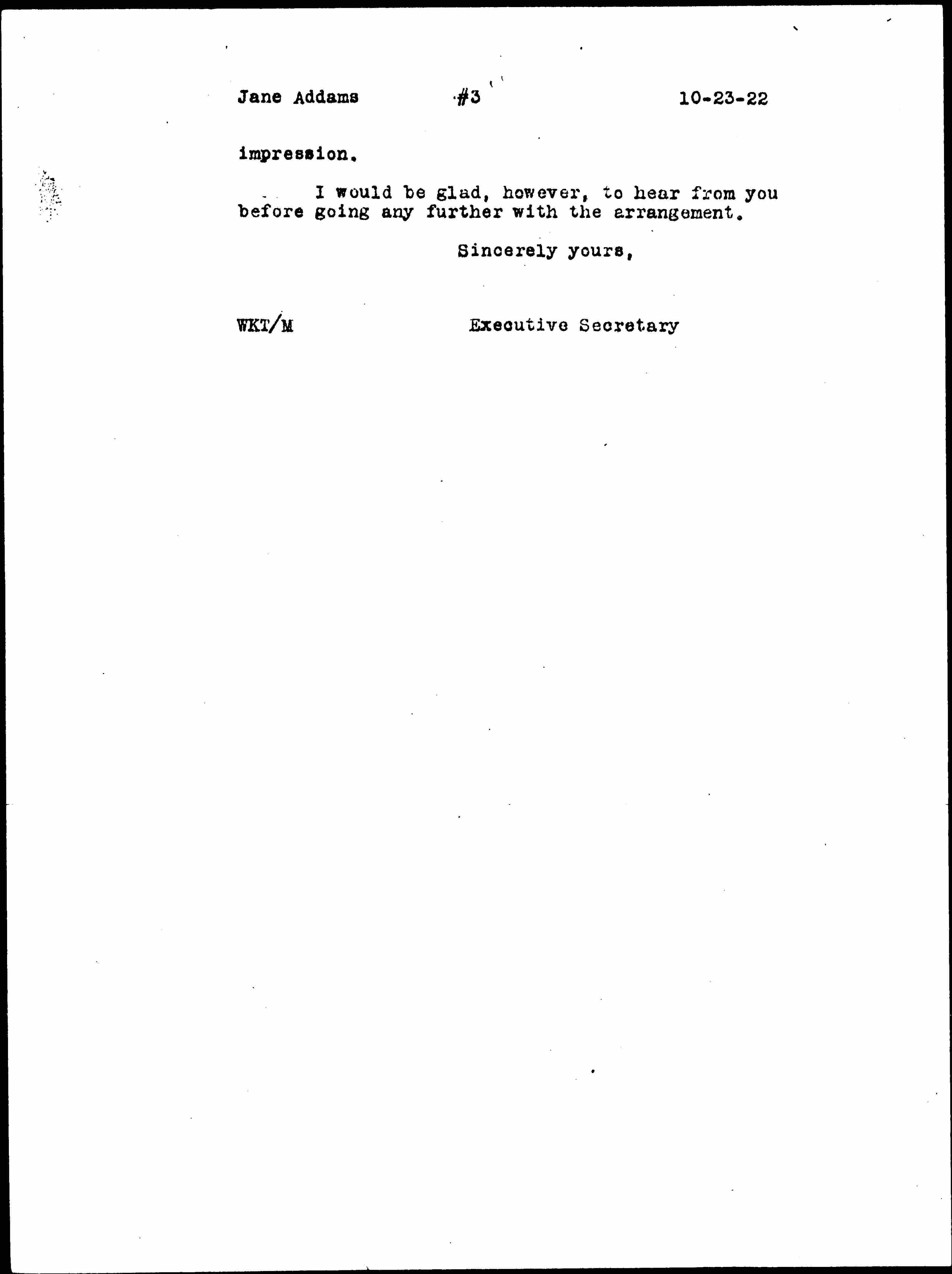 I would be glad, however, to hear from you before going any further with the arrangement.