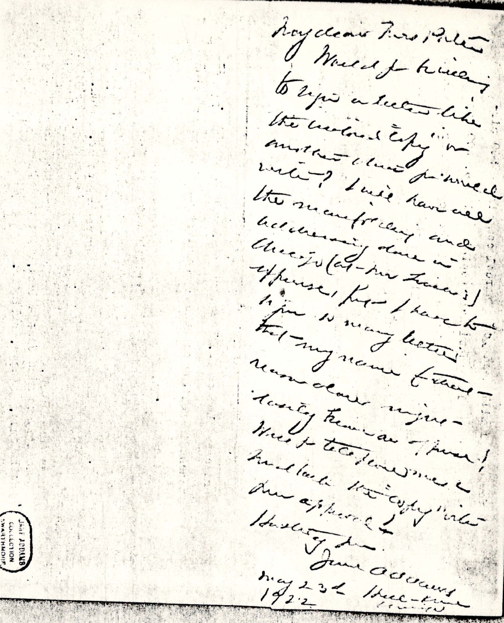 Would you be willing to sign a letter like the [enclosed] "copy" or another which you would write? I will have all the manifolding and addressing done in Chicago (at Mr Leach's expense) but I have to sign so many letters that my name for that reason alone might easily become an offense! Will you telephone me & hand back the "copy" with your approval?