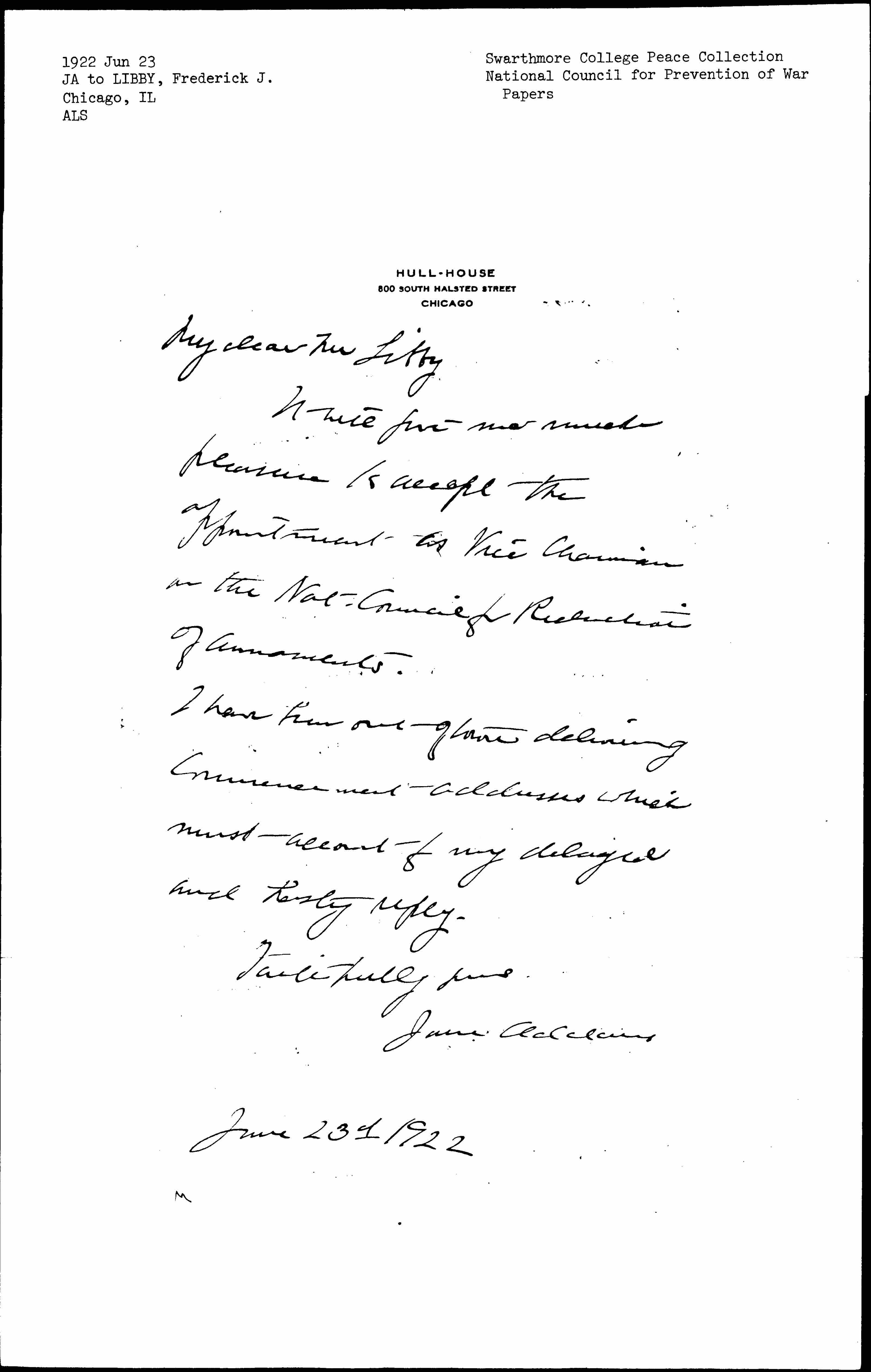 It will give me much pleasure to accept the appointment as Vice Chairman on the Nat. Council for Reduction of Armaments.