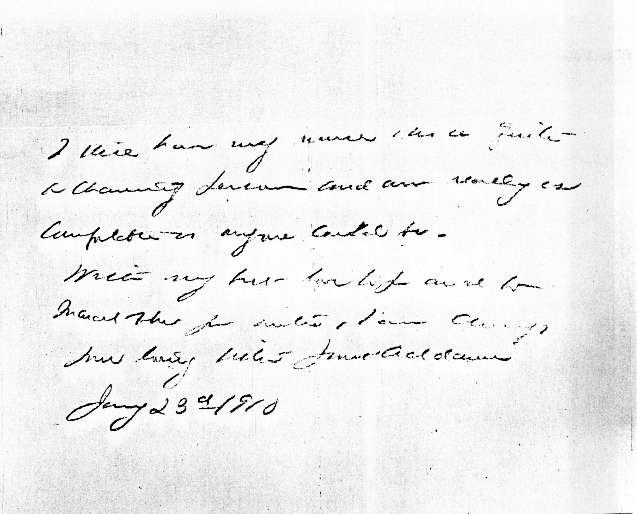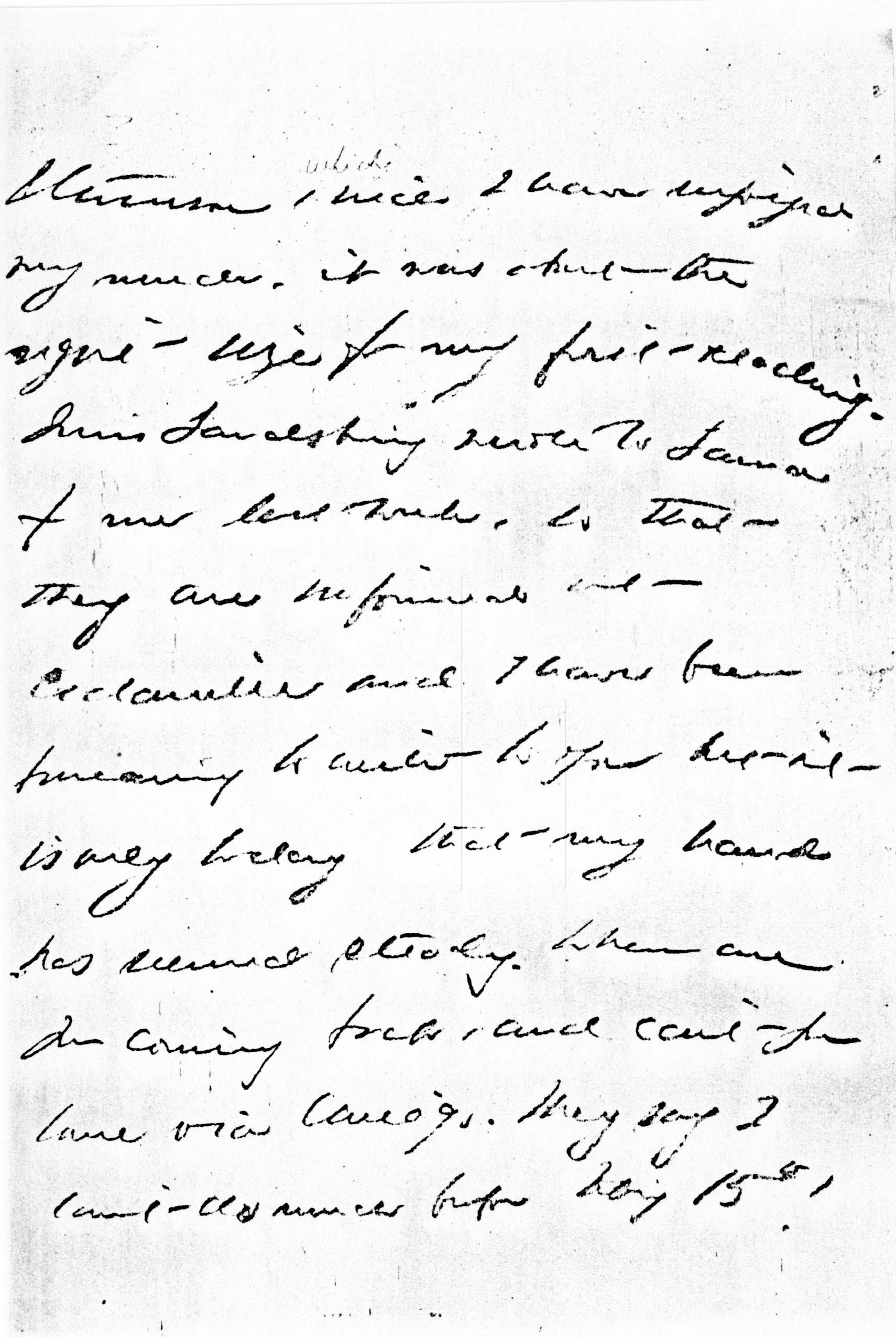 I am very grateful for the [page 2] Stevenson which I have enjoyed very much, it was about the right size for my first reading. Miss Landsberg wrote to Laura for me last week, so that they are informed at Cedarville and I have been meaning to write to you but it is only today that my hand has seemed steady. When are you coming back, and can't you come via Chicago. They say I can't do much before Feby 15th! [page 3] I still have my nurse who is quite a charming person and am really as comfortable as anyone could be.