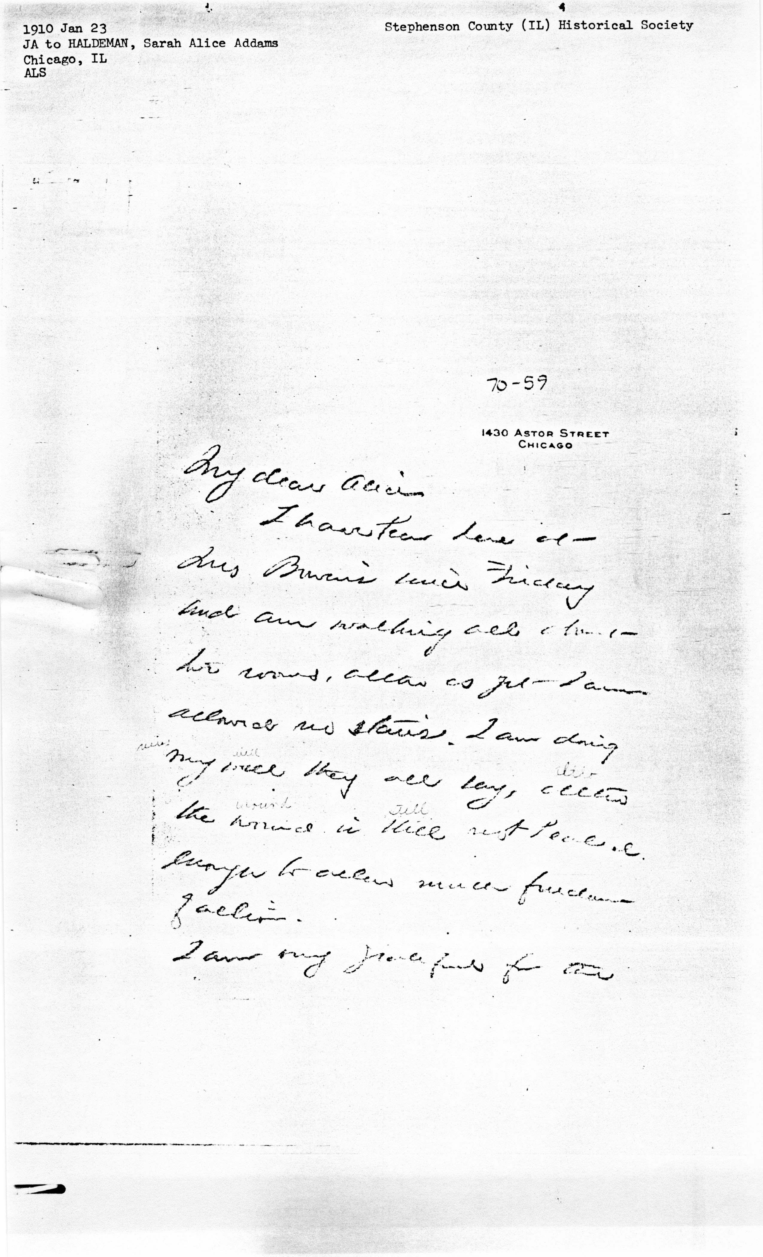 With my best love to you and to Marcet [when you write], I am Always your loving sister Jane Addams