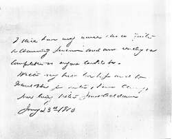 I have been here at Mrs Bowen's since Friday and am walking all about [two] rooms, [although] as yet I am allowed no stairs. I am doing very well they all say, [although] the wound is still not healed enough to allow much freedom of action.