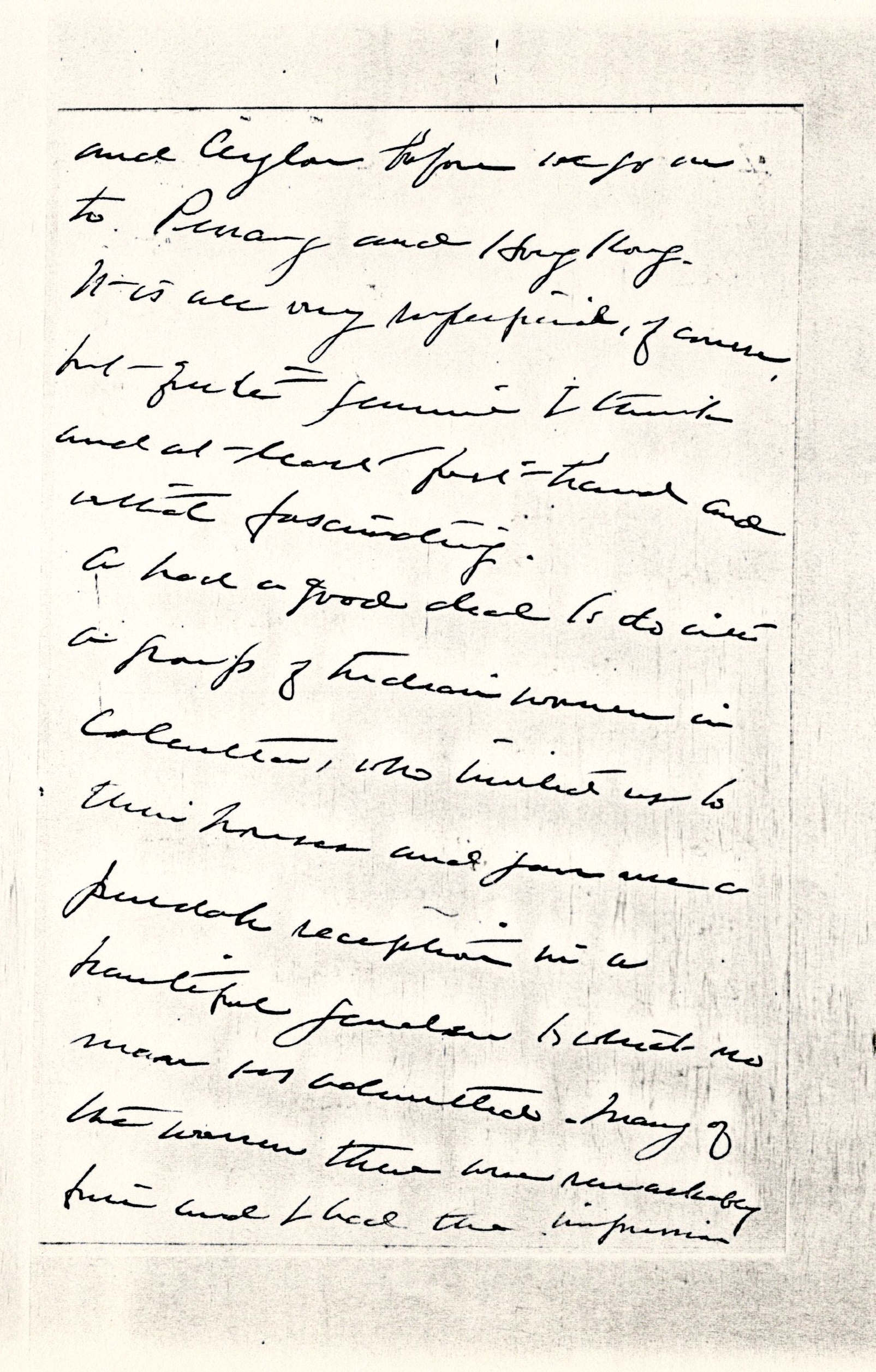 We were in northern India just one month, are now en route for Burma and then back to South India [page 3] and Ceylon before we go on to Penang and Hong Kong. It is all very superficial, of course, but quite genuine I think and at least first hand and withal fascinating.