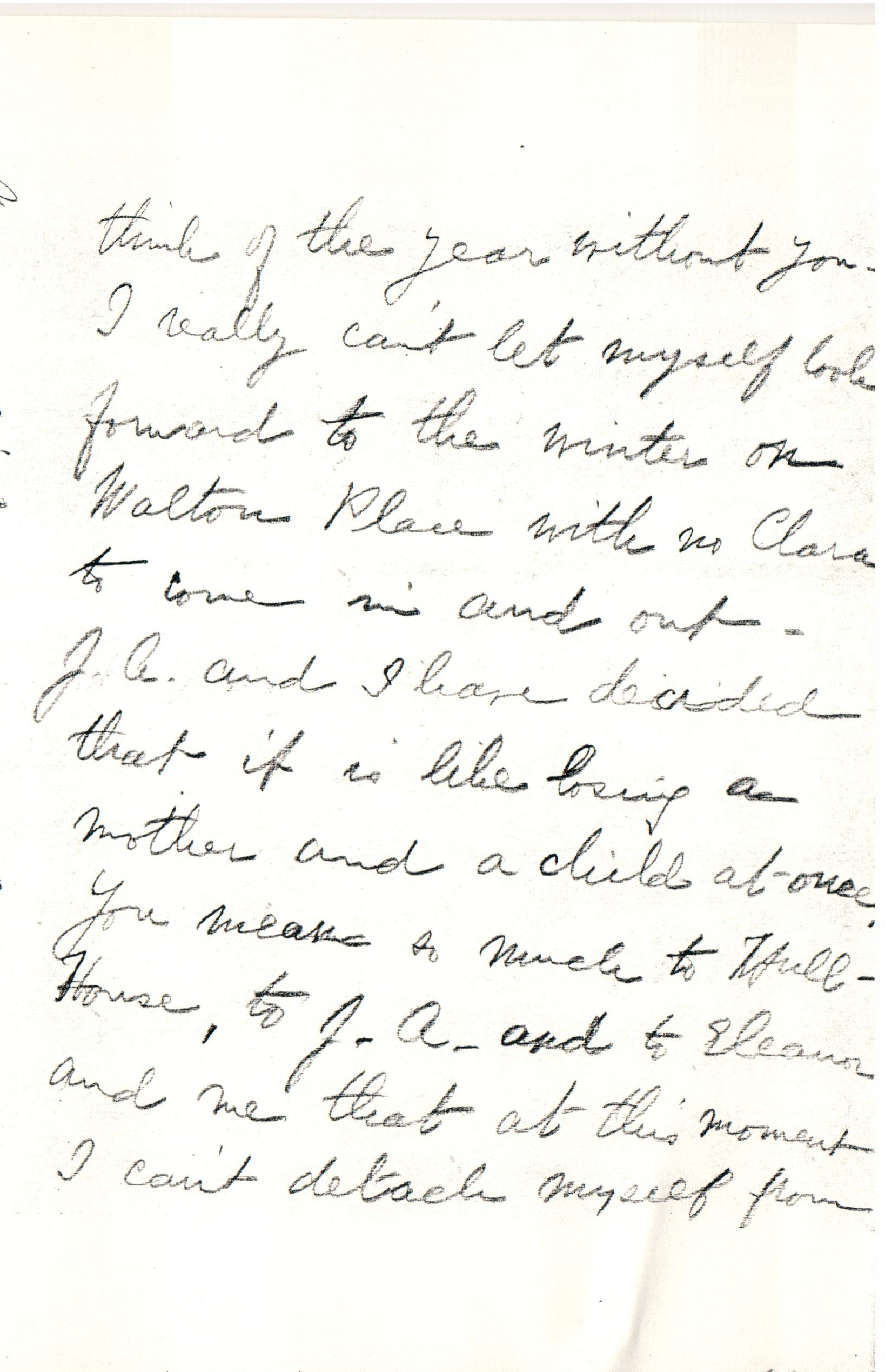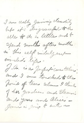 J. A. is a perfect "care taker" and I am touched to the point of tears when I think of her goodness and Eleanor's and yours and Alice's -- Jane is going to write a [page 7] note to enclose in this.