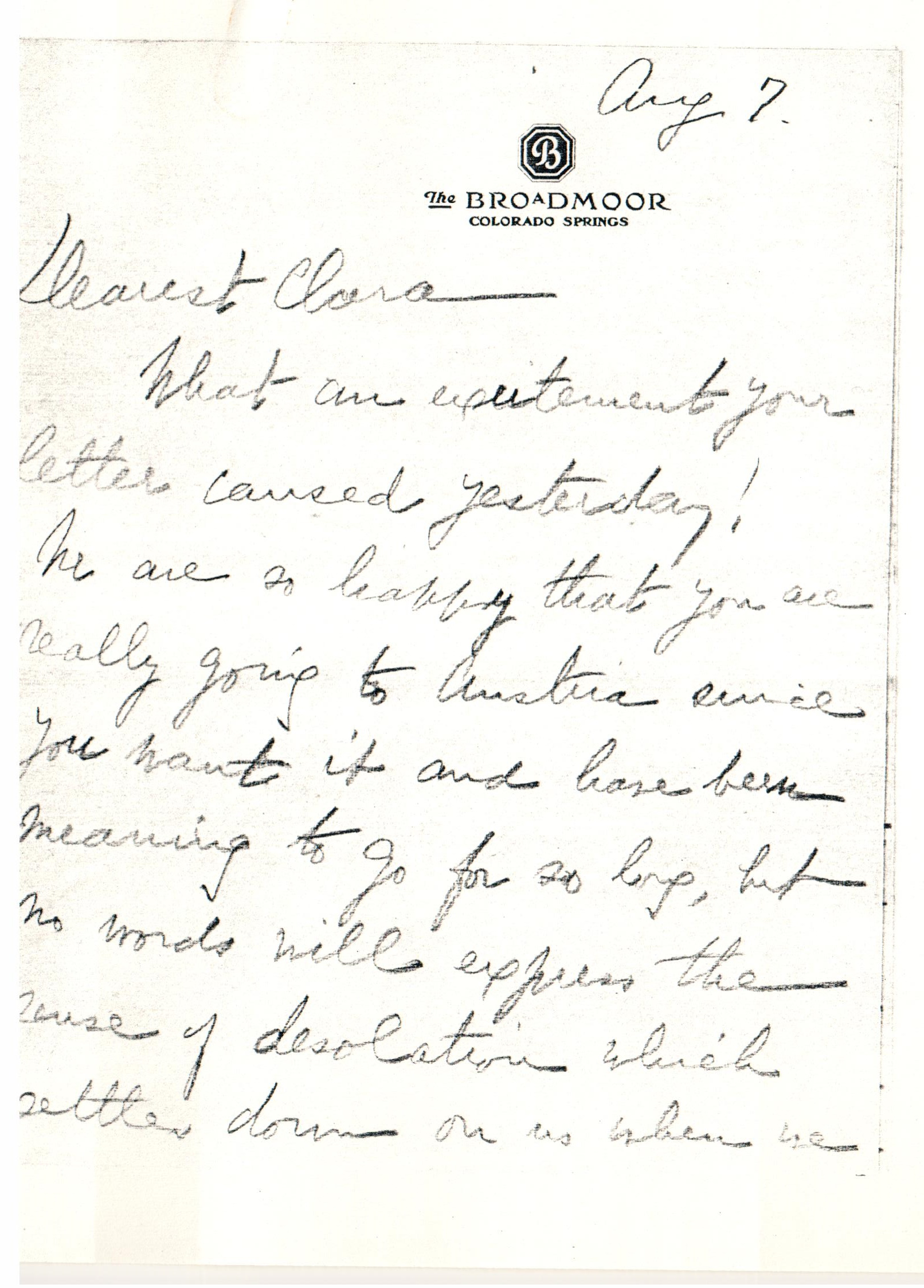 We are so happy that you are really going to Austria since you want it and have been meaning to go for so long, but no words will express the sense of desolation which settles down on us when we [page 2] think of the year without you. I really can't let myself look forward to the winter on Walton Place with no Clara to come in and out. J. A. and I have decided that it is like losing a mother and a child at once. You mean so much to Hull-House, to J. A. and to Eleanor and me that at this moment I can't detach myself from [page 3] narrow grief over your absence. With Alice in Boston and you in Vienna what will Hull-House be? It is too depressing to face.