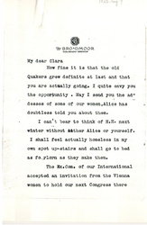 How fine it is that the old Quakers grew definite at last and that you are actually going. I quite envy you the opportunity. May I send you the addresses of some of our women, Alice has doubtless told you about them.