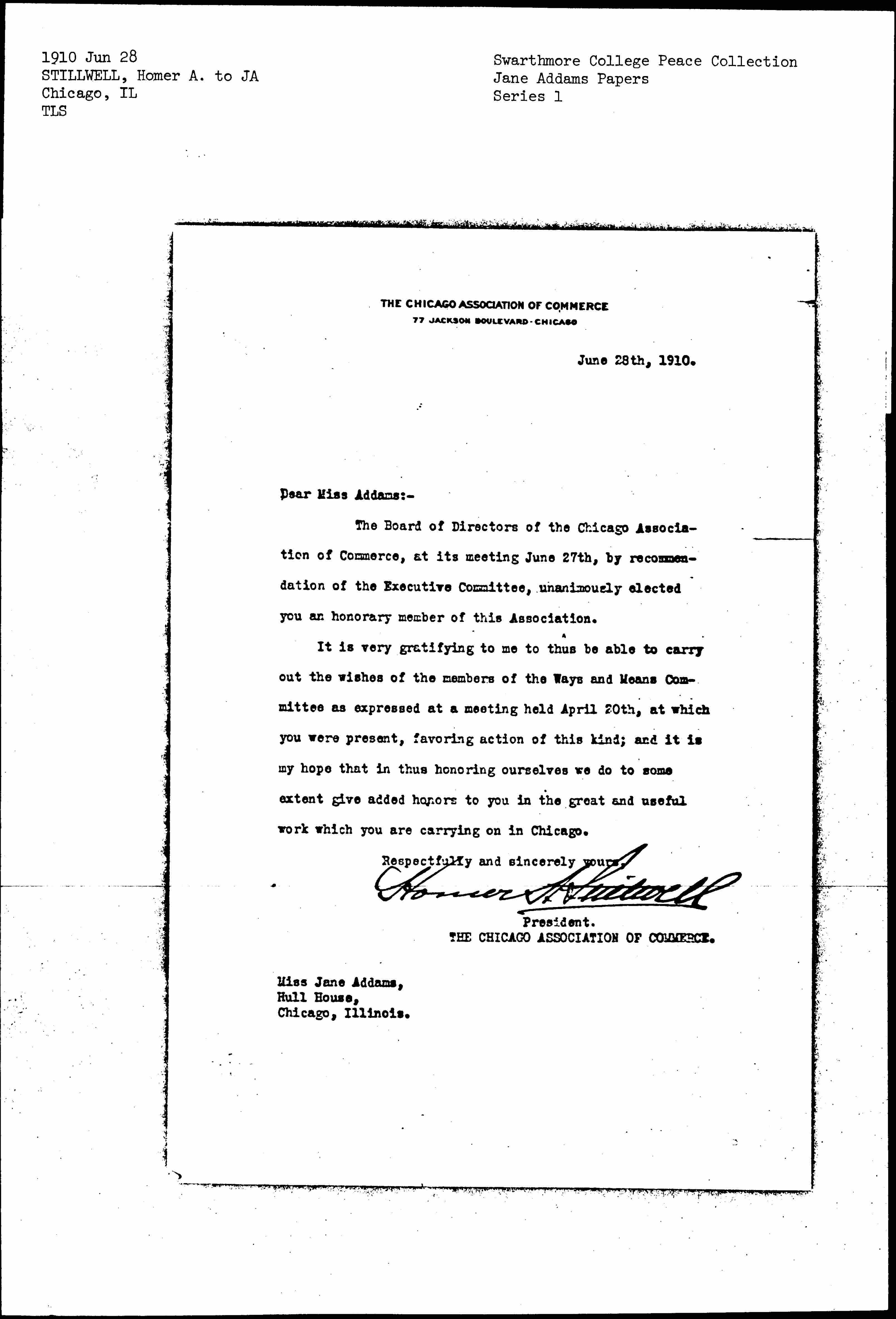 The Board of Directors of the Chicago Association of Commerce, at its meeting June 27th, by recommendation of the Executive Committee, unanimously elected you an honorary member of this Association.