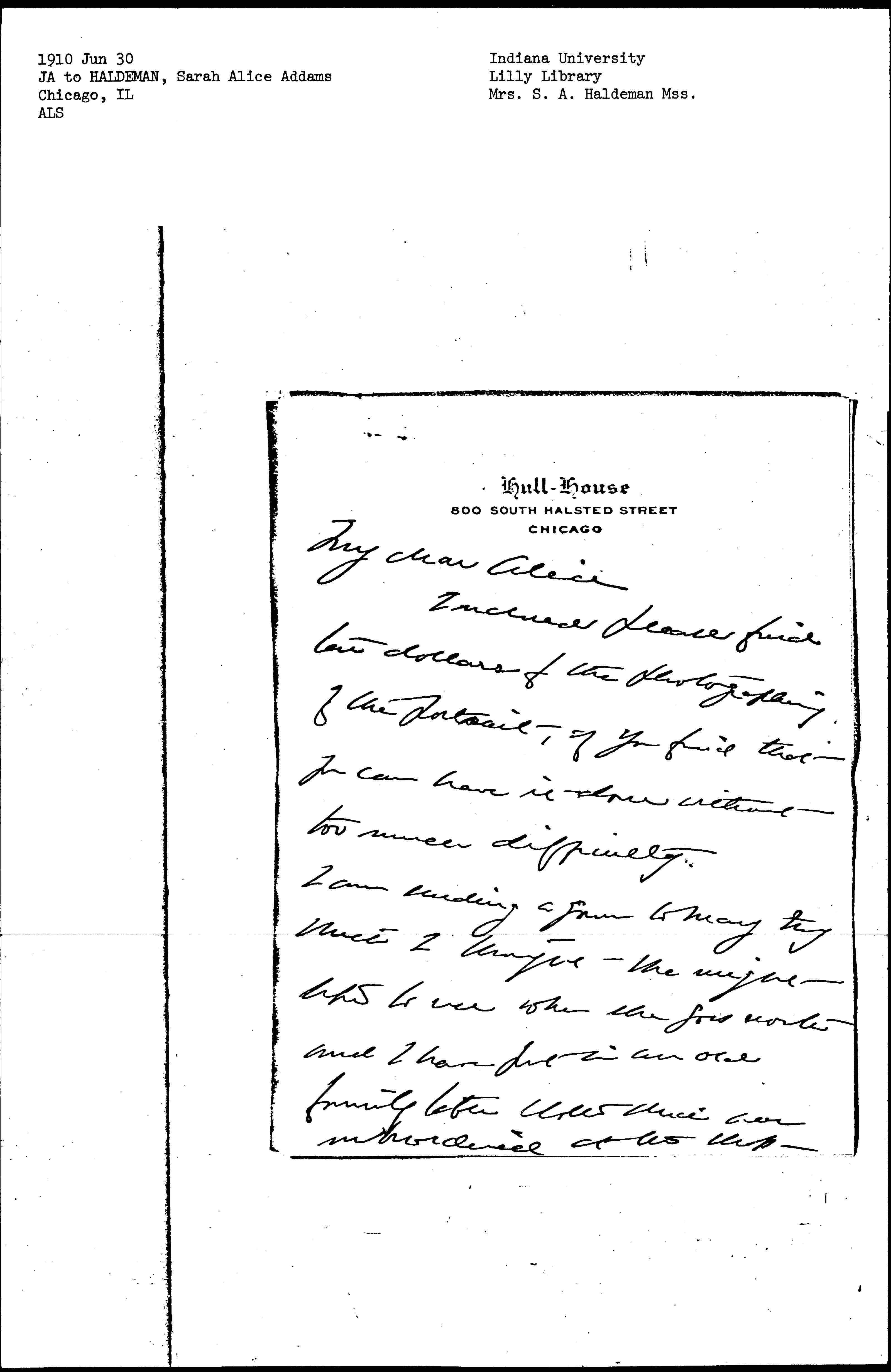 [Enclosed] please find ten dollars for the photography of the portrait, if you find that you can have it done without too much difficulty.