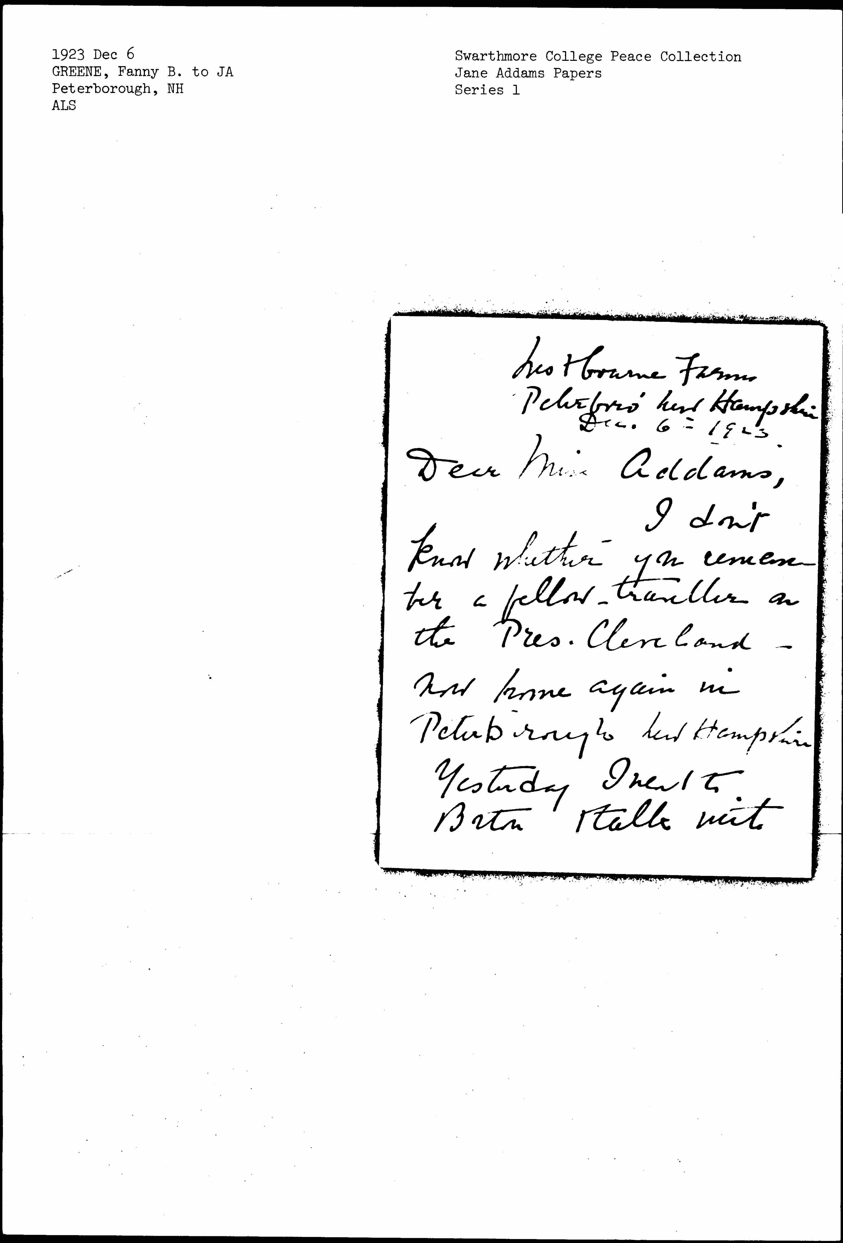 I don't know whether you remember a fellow [traveler] on the Pres. Cleveland -- now home again in Peterborough New Hampshire.