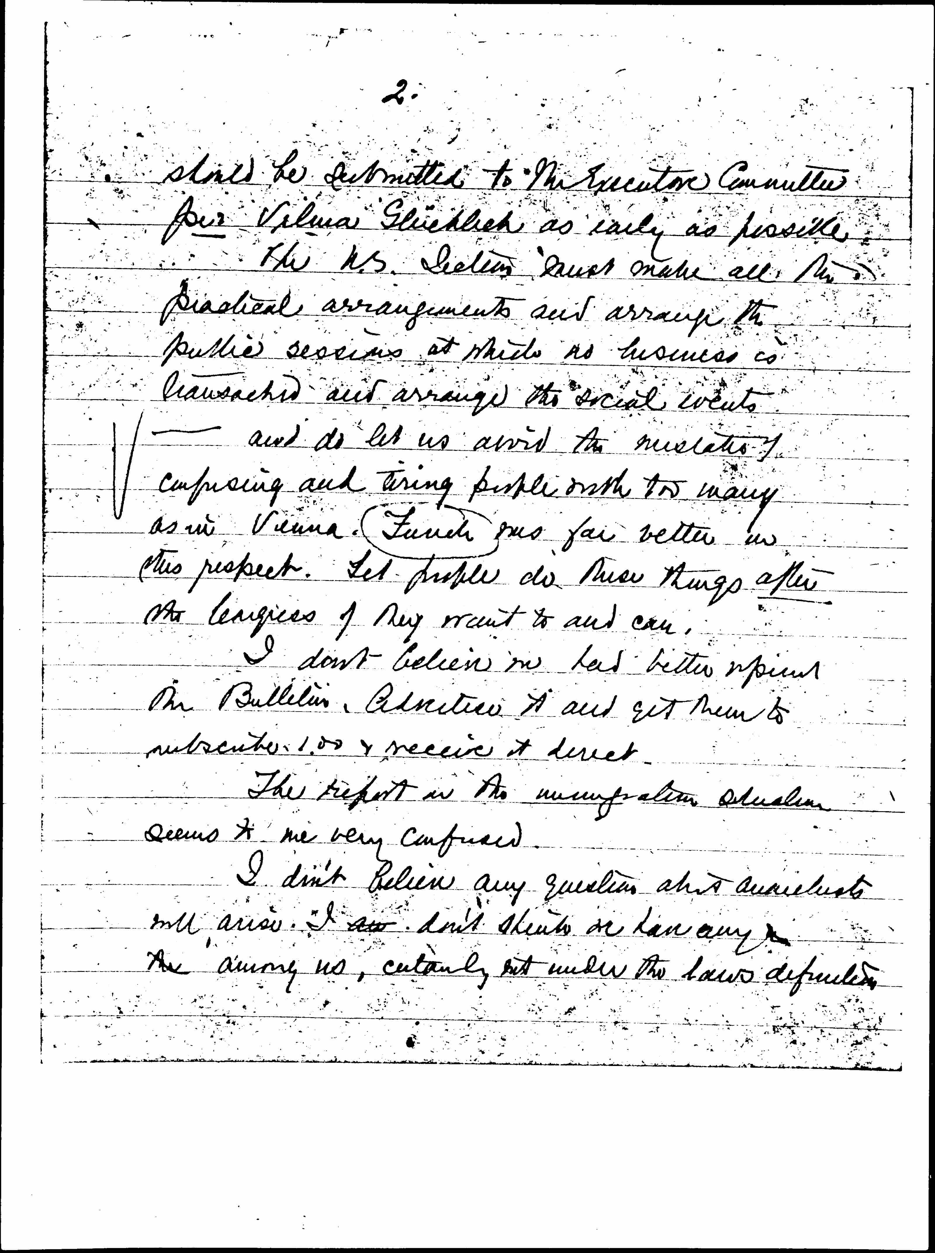 As I understand it proposals for the [agenda] and resolutions desired to be put [page 2] should be submitted to the Executive Committee per Vilma Glücklich as early as possible.